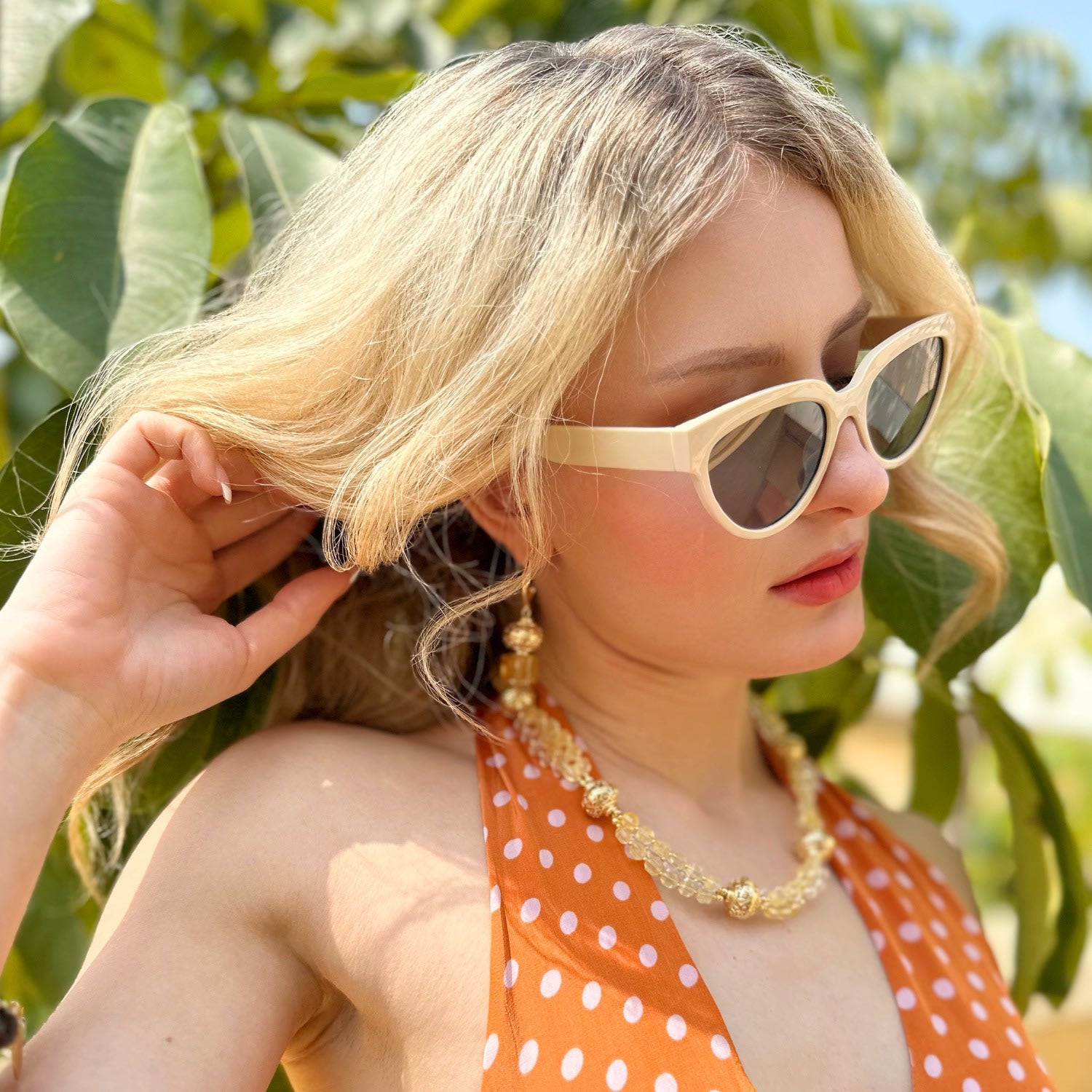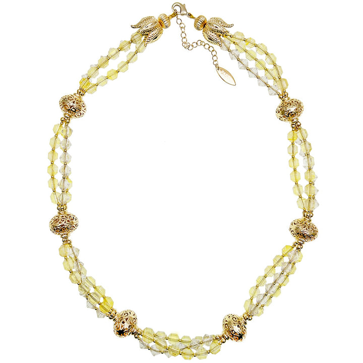 This Citrine Double Layers Short Necklace by Farra is a fashionable and adaptable accessory for a multitude of summer occasions. The double-layered design and vibrant citrine stones create a stylish and joyful look, perfect for beach days or outdoor evenings. This necklace is an ideal seasonal accessory that adds a touch of sunshine to any outfit.