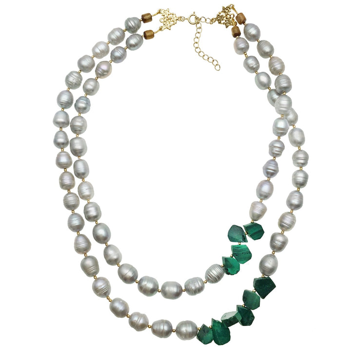 Gray Freshwater Pearls With Malachite Double Strands Necklace