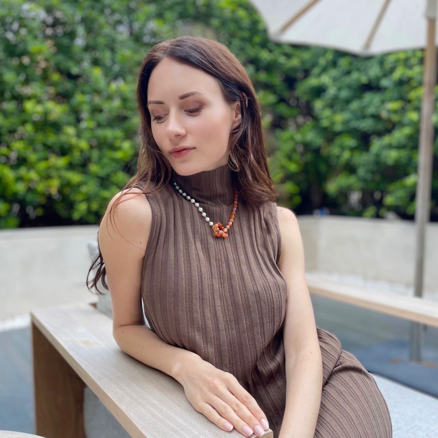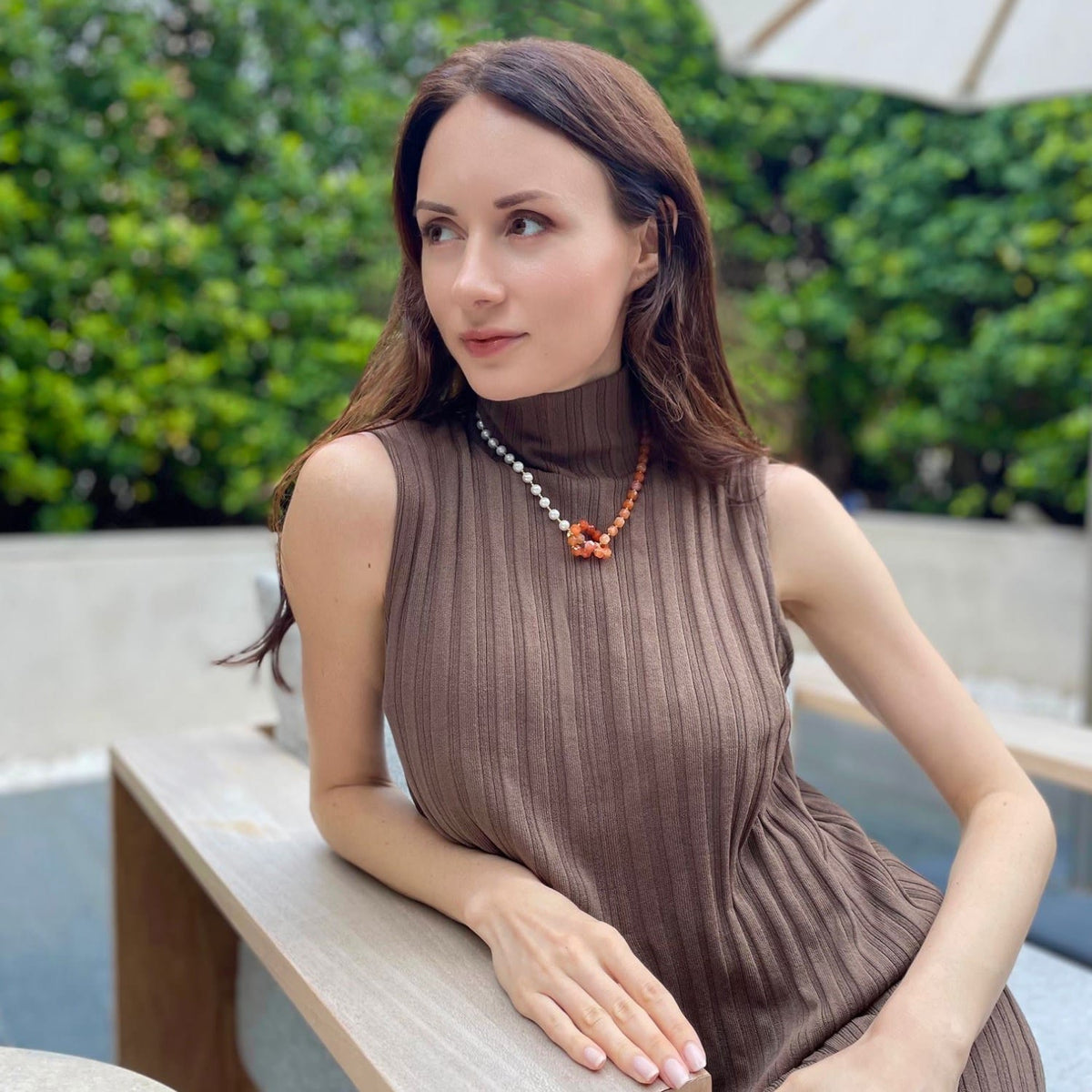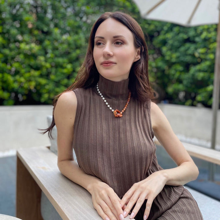 Knotted Orange Agate With Freshwater Pearl Short Necklace