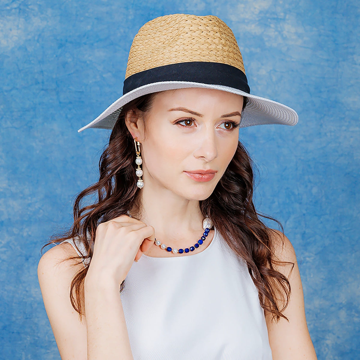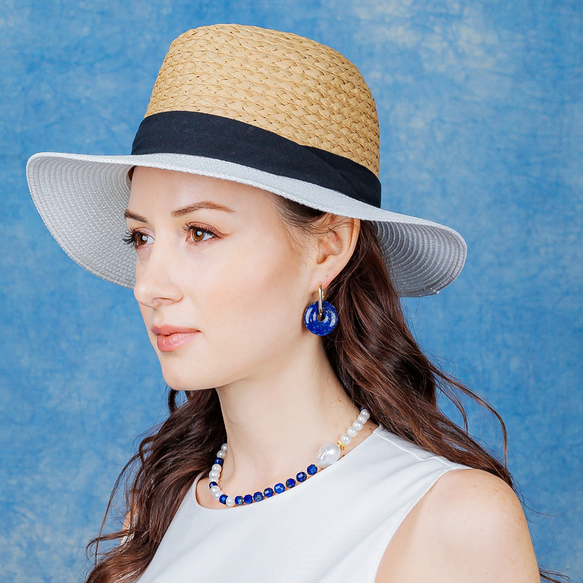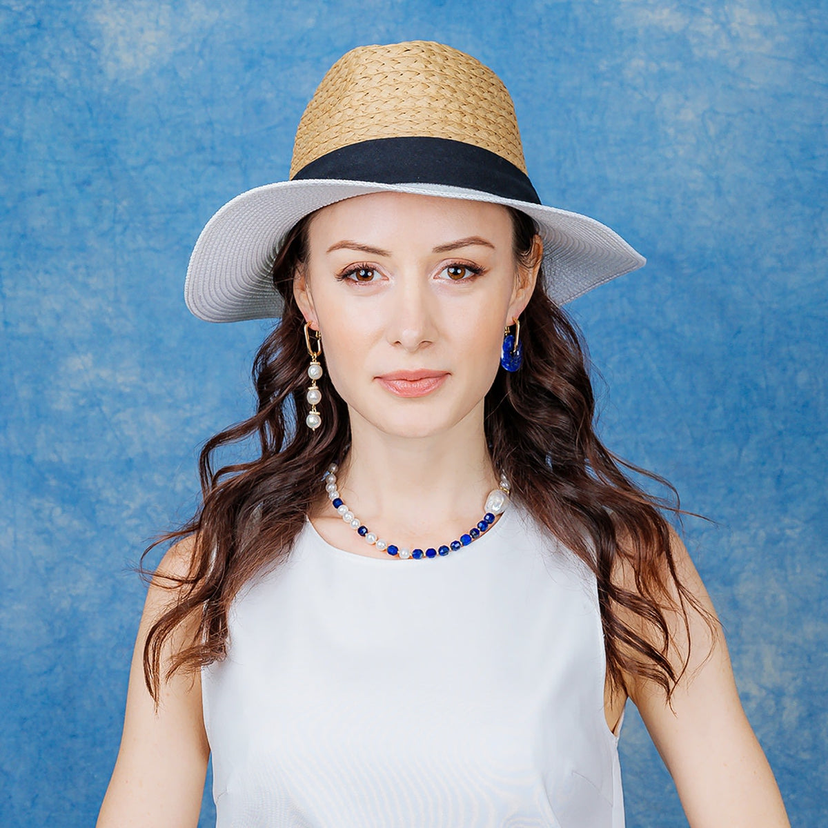 These Asymmetric Lapis & Freshwater Pearls Clip On Earrings by Farra are a modern and stylish accessory. These asymmetric clip-on earrings are made of lapis with freshwater pearls. They are perfect for wearing with a dress, knitwear, or denim from day to night, making them a special and versatile piece.