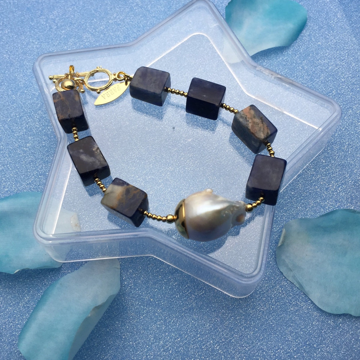 Square Lapis Lazuli With Baroque Pearl Bracelet