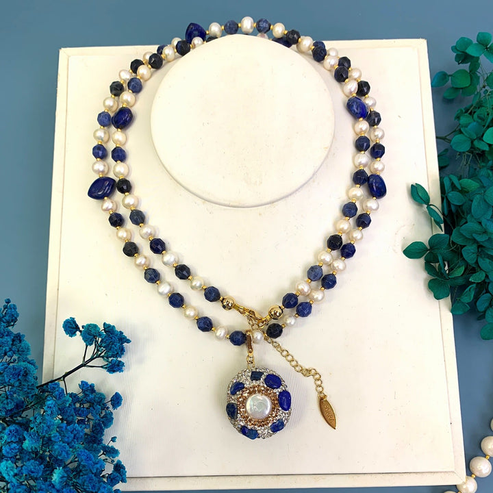 Freshwater Pearls With Lapis With Removable Pendnat Necklace