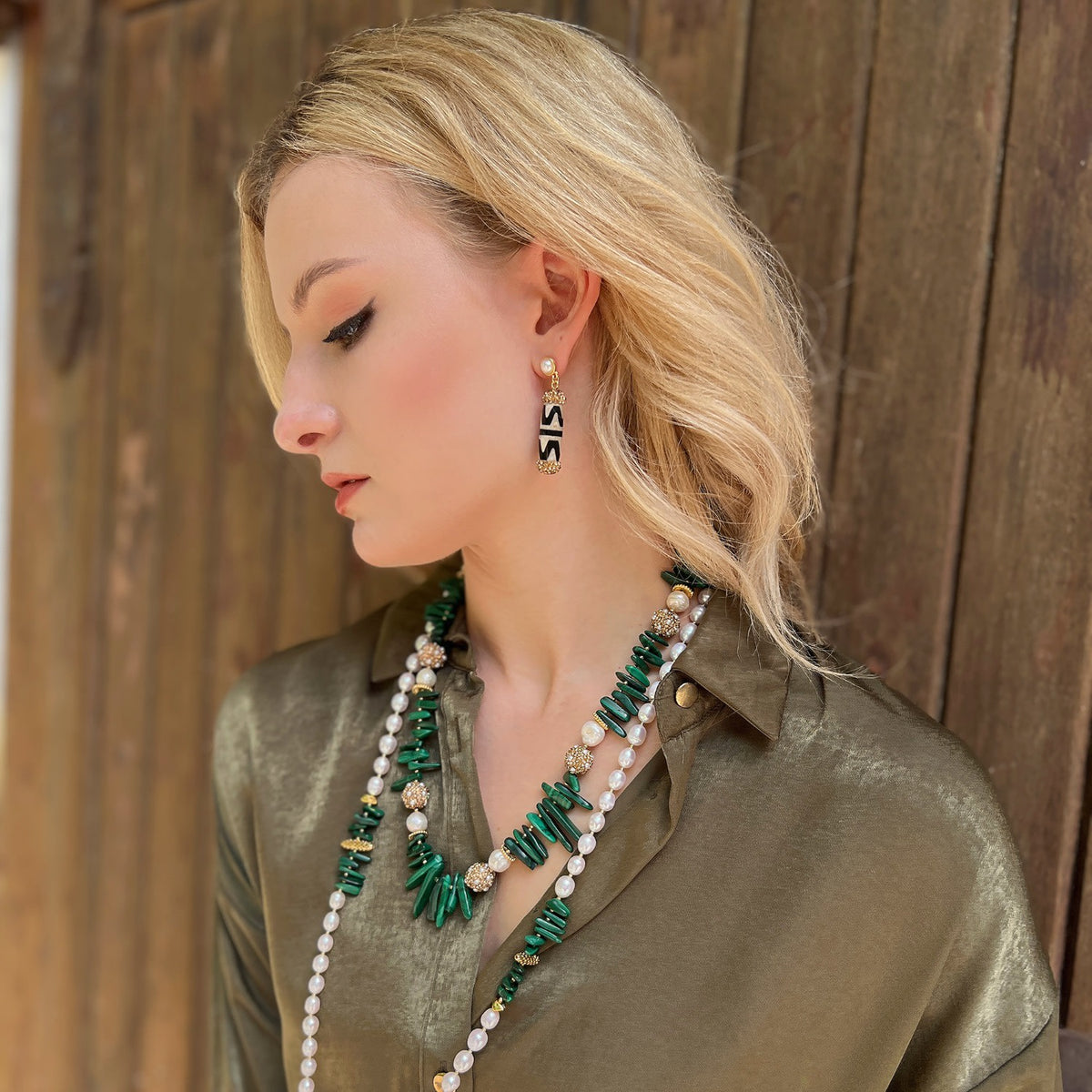 Stick Shaped Malachite With Pearl Rhinestone Statement Necklace