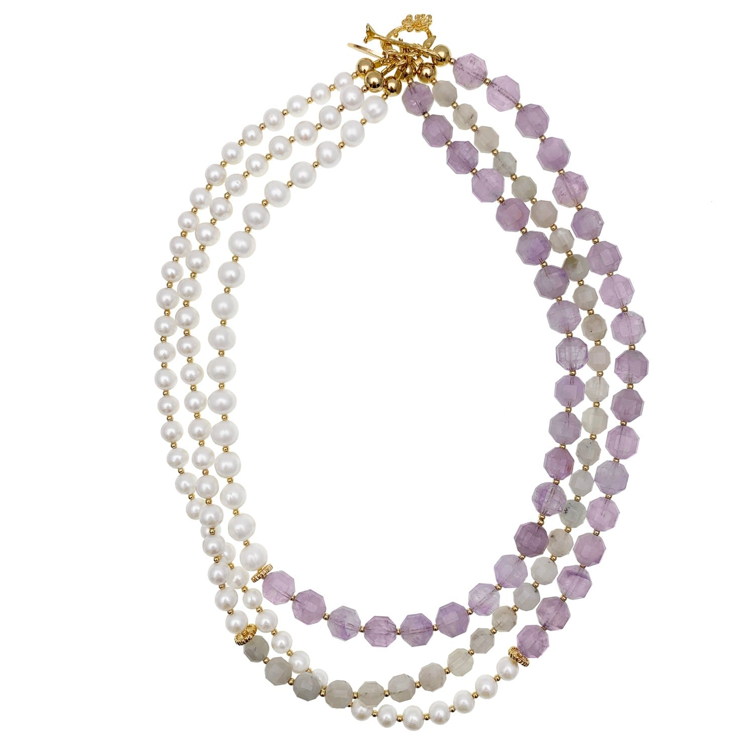 Amethyst With Freshwater Pearls Multi-Strands Necklace