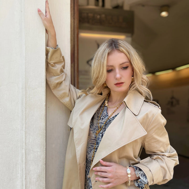 This Citrine With Freshwater Pearls Short Necklace by Farra is a beautiful and feminine piece that brings a sunny, joyful vibe to your style. The combination of natural citrine and freshwater pearls creates an elegant and organic feel, perfect for both special events and everyday life. This necklace can be paired with matching earrings or a bracelet to create a stunning, coordinated look, making it a perfect gift for birthdays or anniversaries.