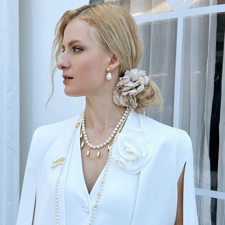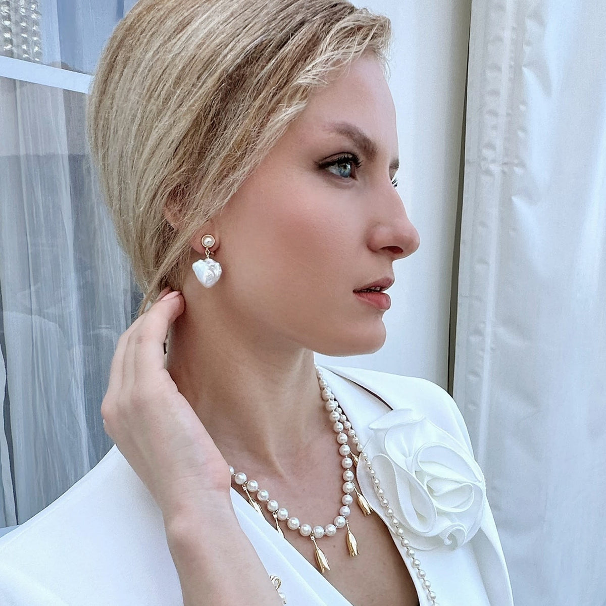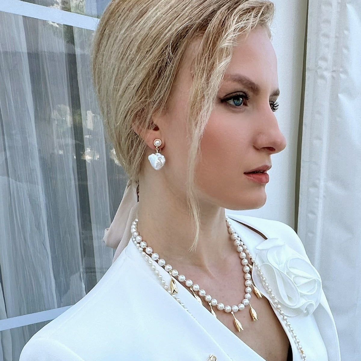 These clip-on earrings are crafted with freshwater baroque pearls. To maintain their quality, avoid contact with harsh chemicals such as perfumes, lotions, and hairsprays.