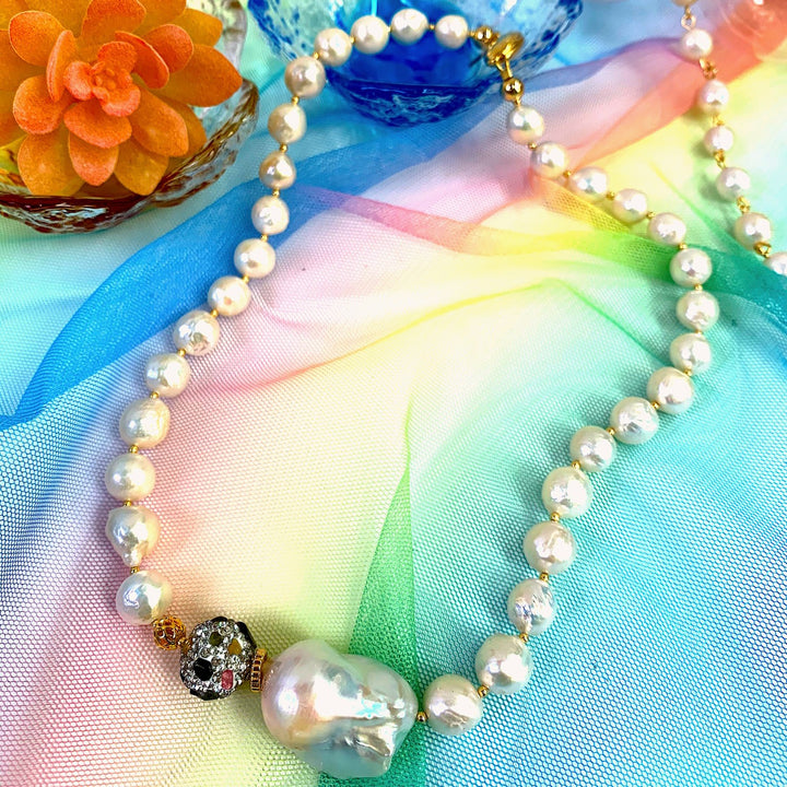 Irregular Pearls With Baroque Pearls & Rhinestones Necklace