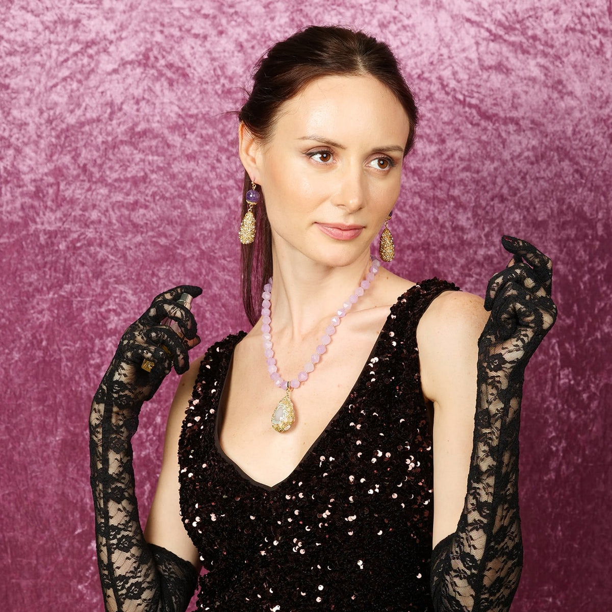 Amethyst Stones With Removable Rhinestone Charm Short Necklace