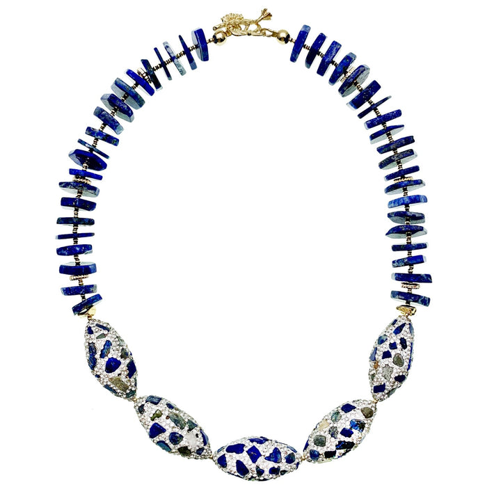 Lapis With Rhinestones Bordered Lapis Stones Short Necklace