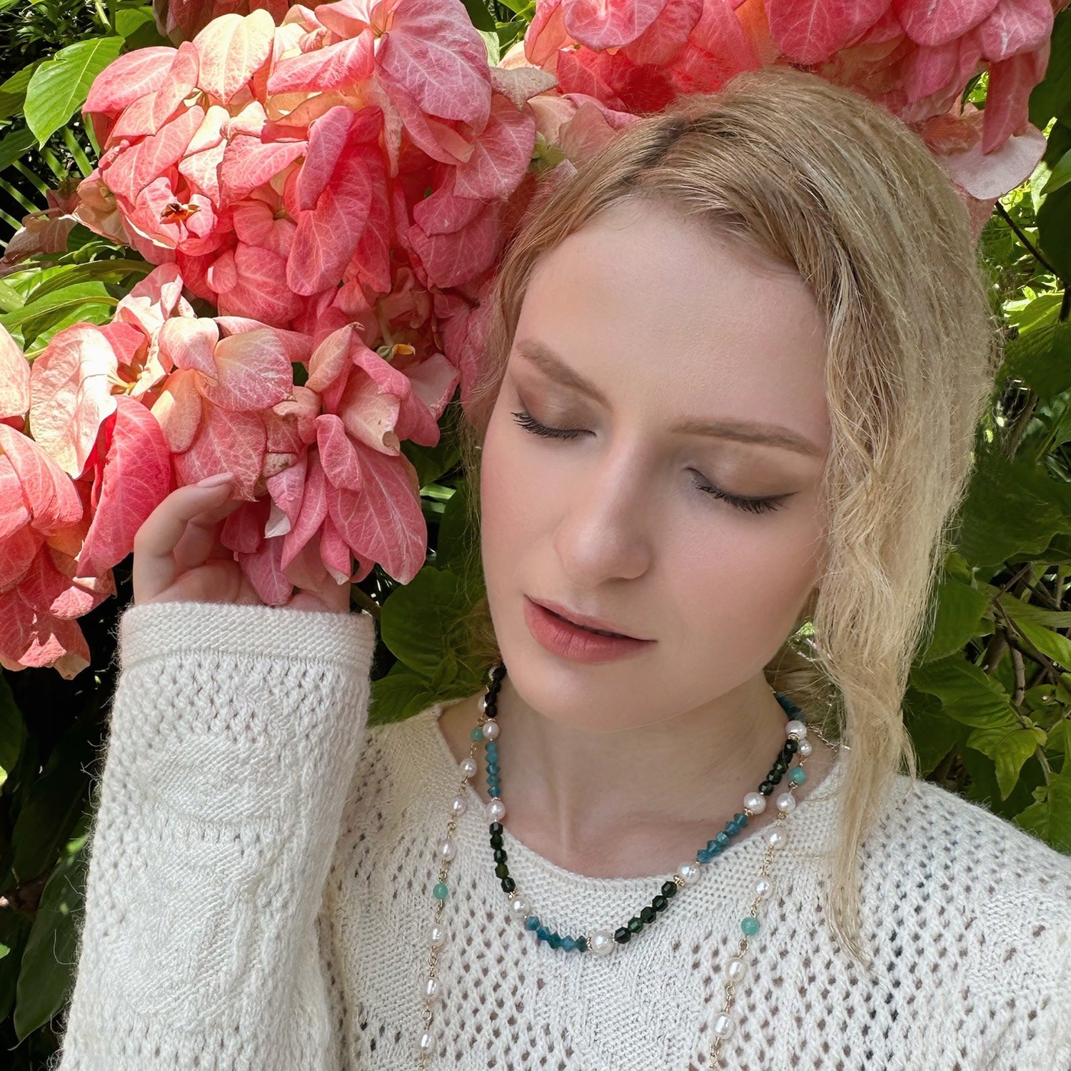 Green & Blue Gemstone With Freshwater Pearls Necklace