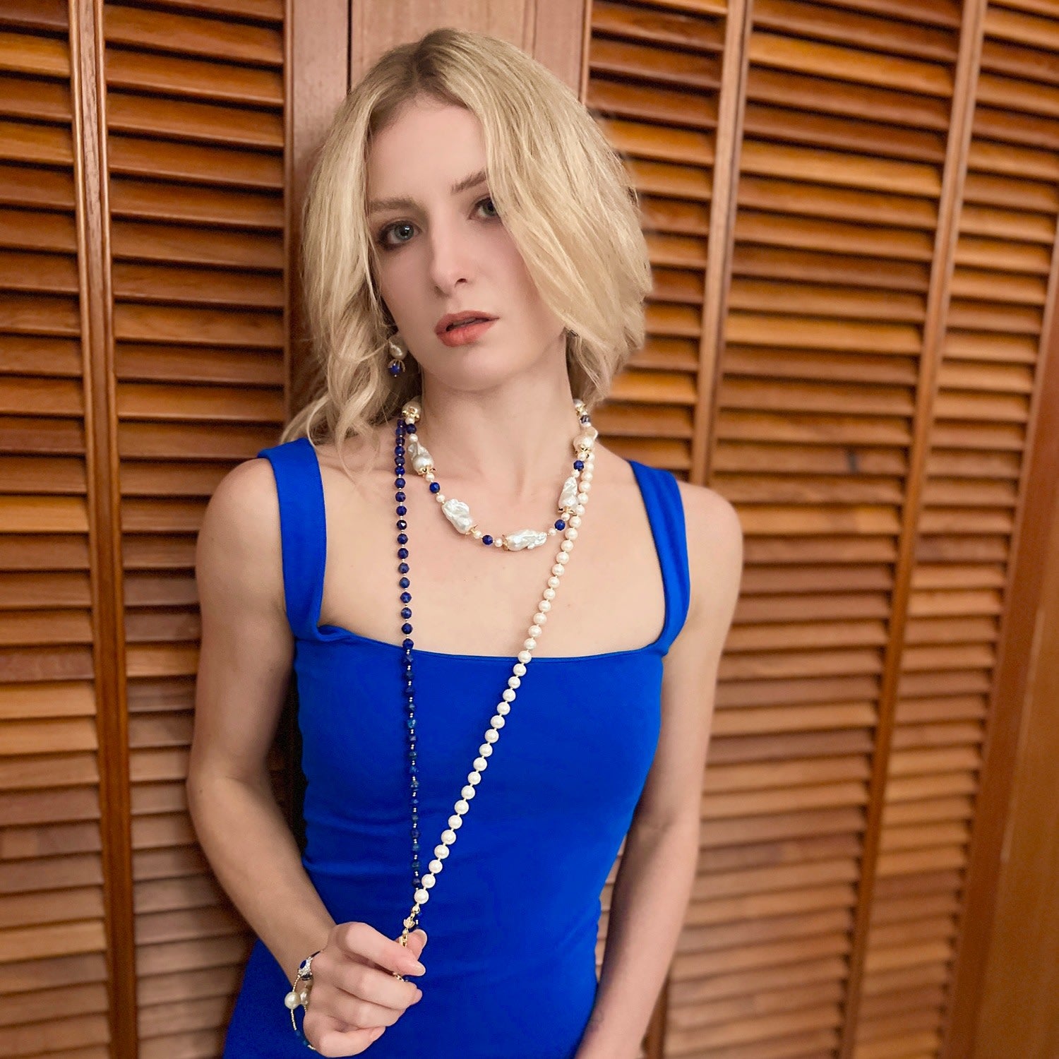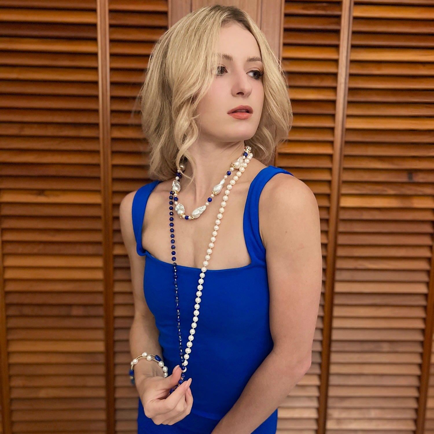 Lapis & Freshwater Pearls Multi-Way Necklace