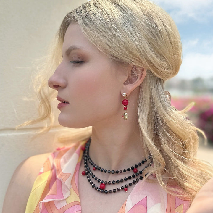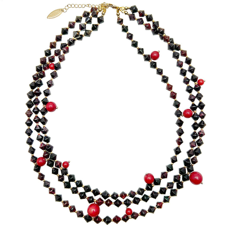 Multi-Layers Garnet With Red Coral Statement Necklace