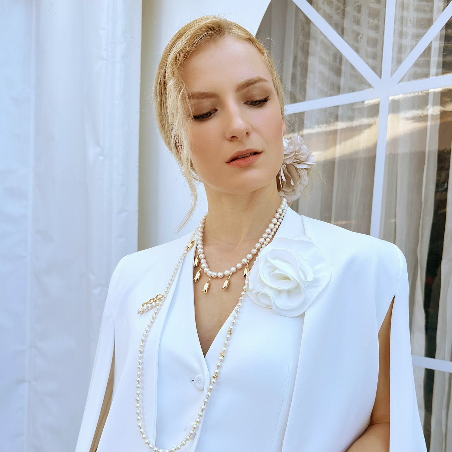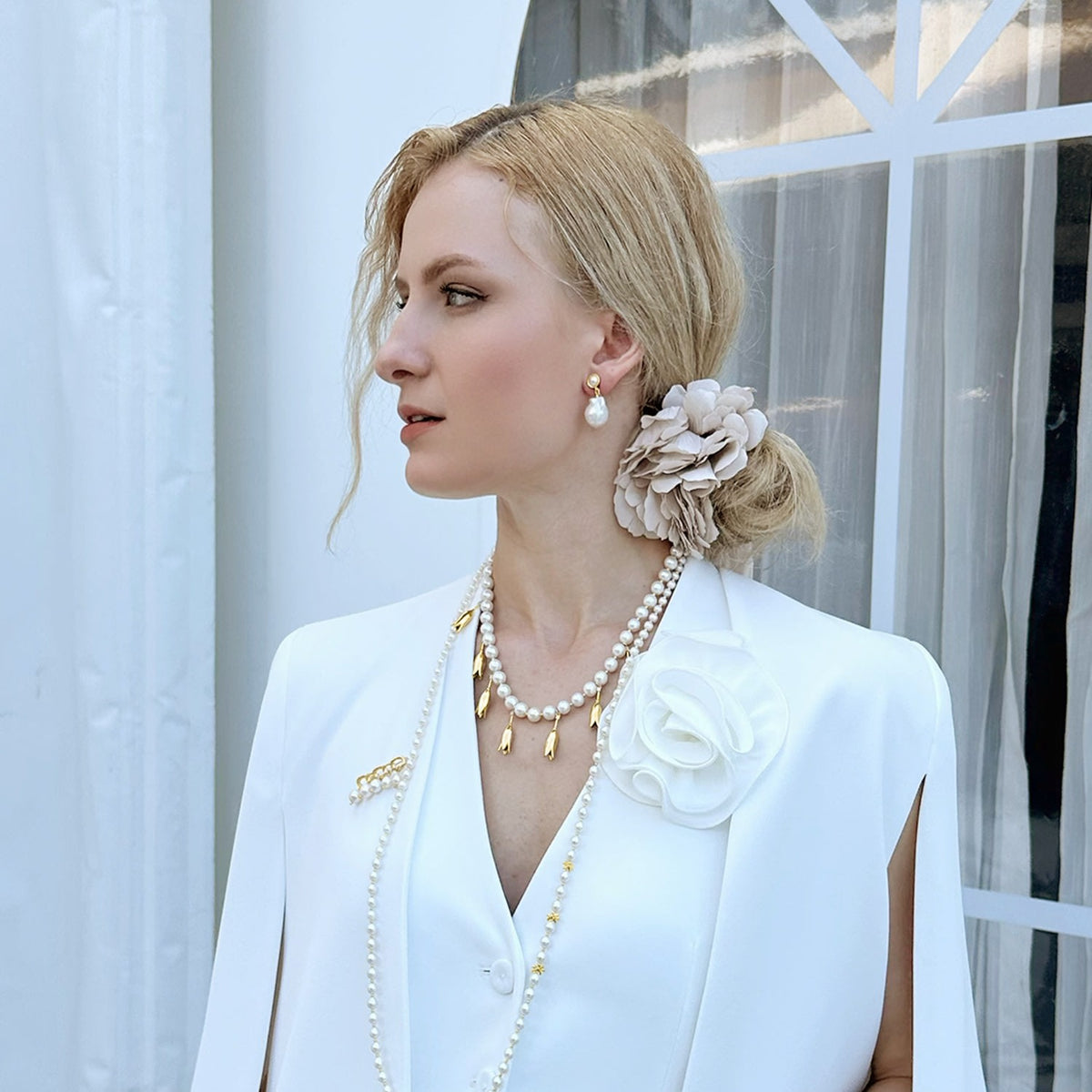 This Timeless Freshwater Pearls Long Necklace by Farra is a beautiful and versatile accessory. Its multi-way design allows you to experiment with your own unique style. The classic style of this necklace adds sophistication to any outfit, making it a perfect gift for a special occasion.