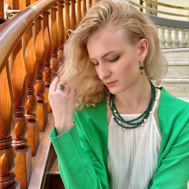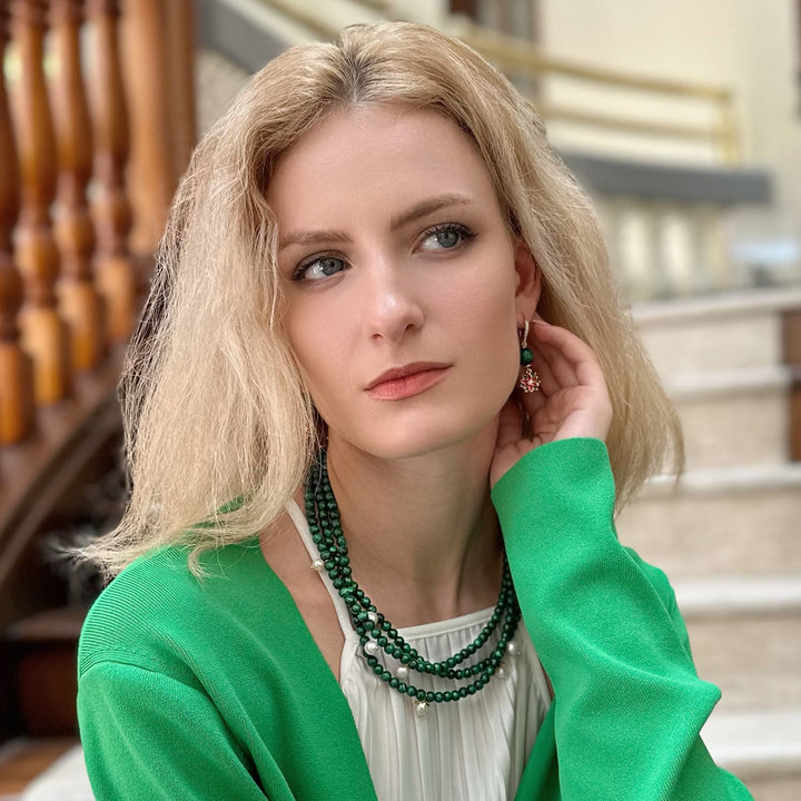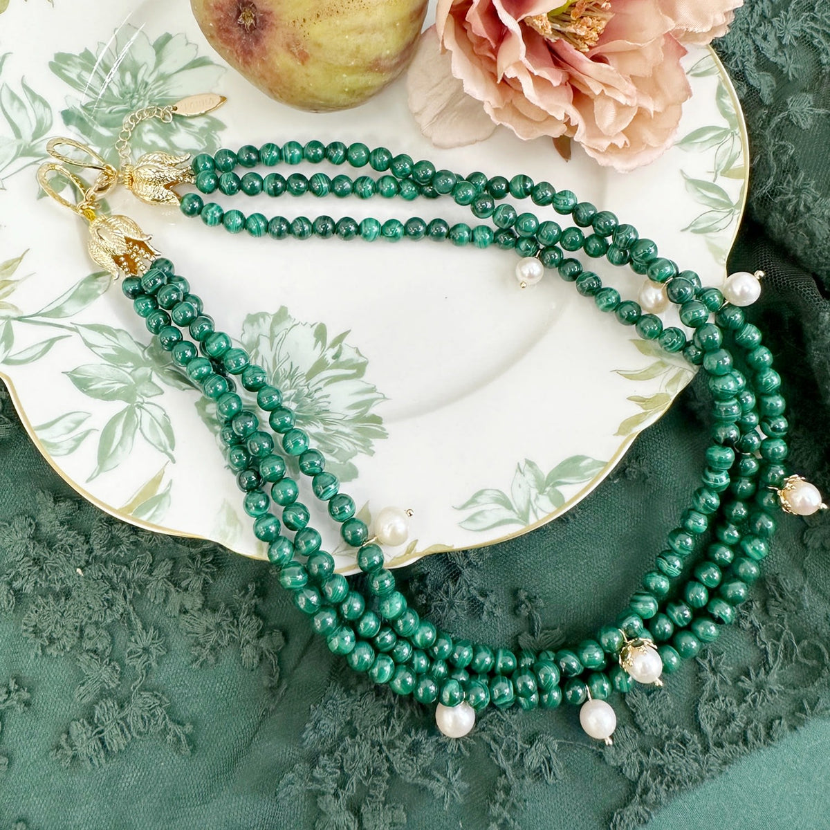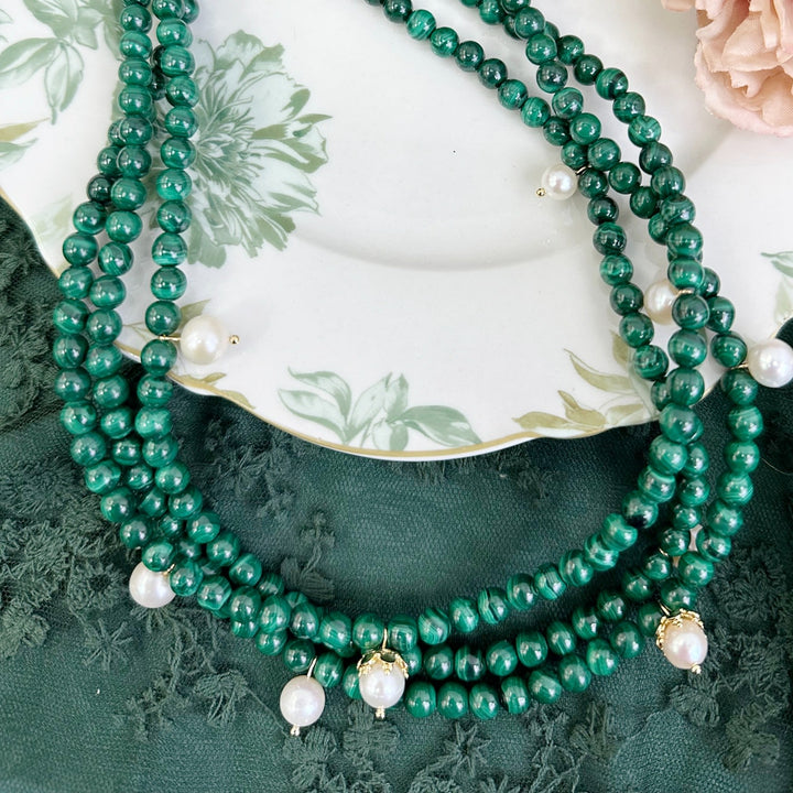 Malachite & Freshwater Pearls Triple Strands Necklace