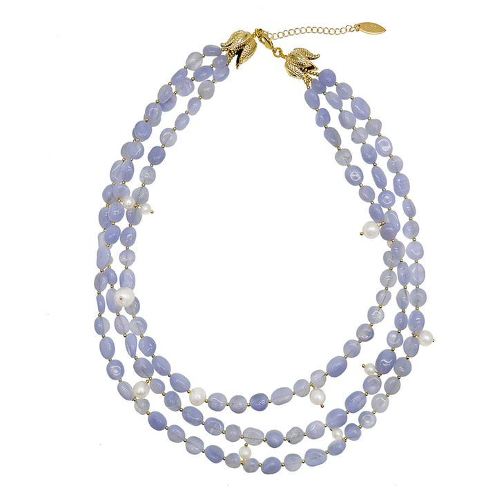 Multi-Layers Blue Lace Agate With Pearls Necklace