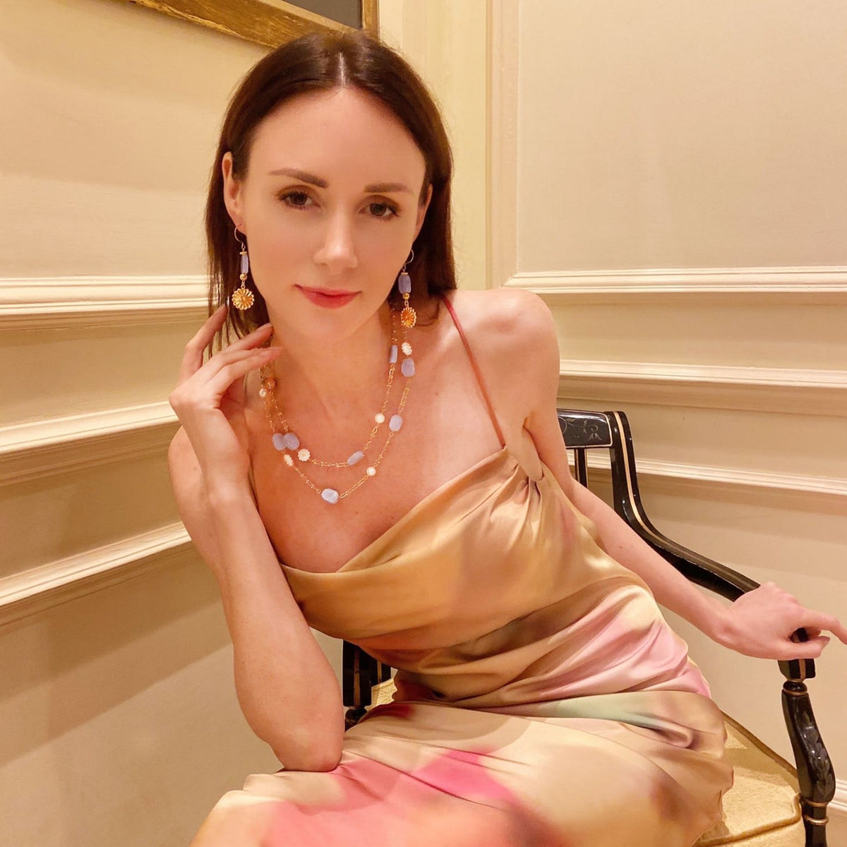 Blue Lace Agate With Sunflower Shell & Rhinestones Multi-Way Chain Necklace