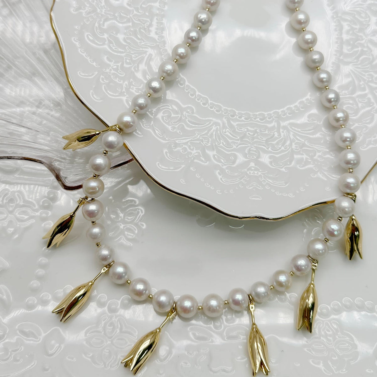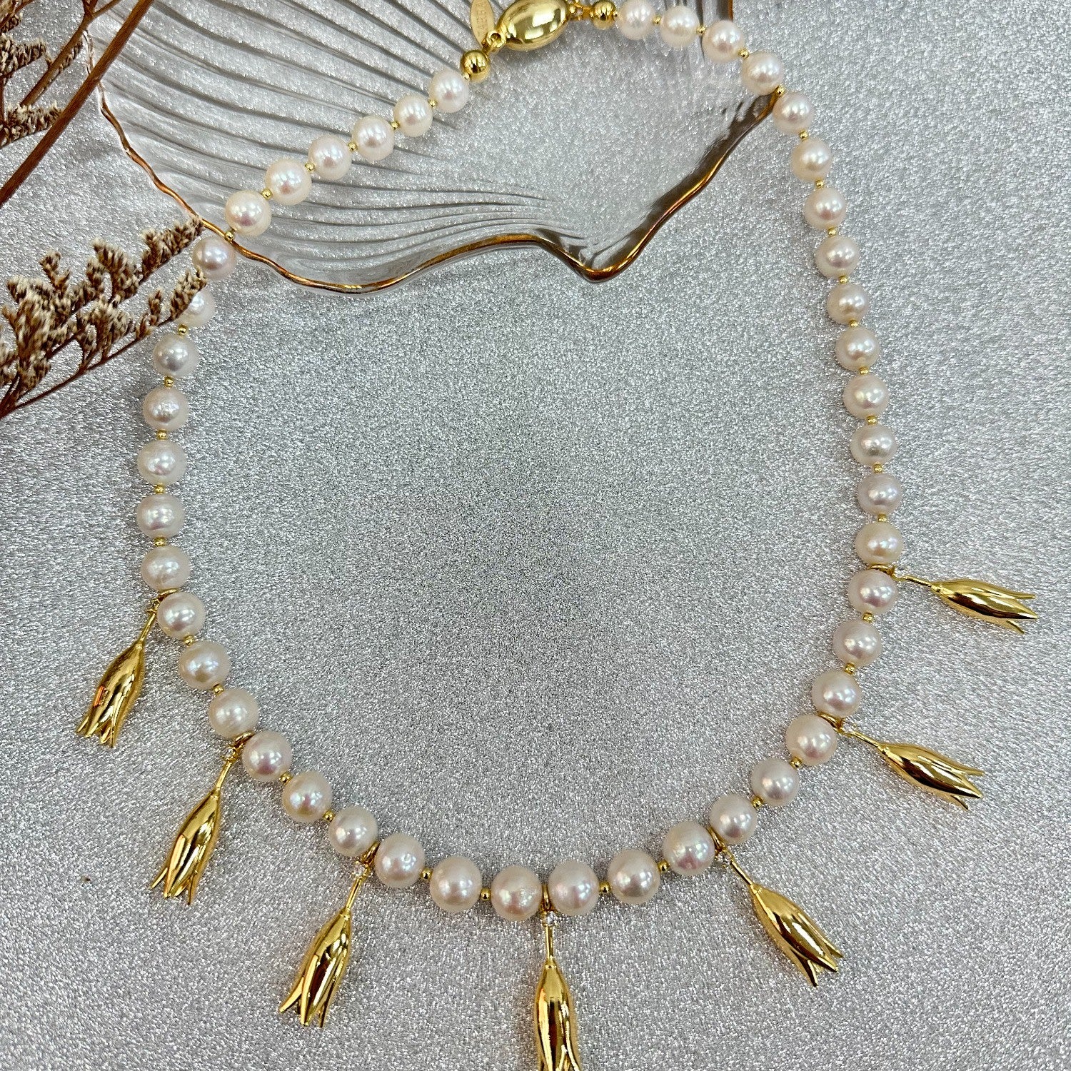 Freshwater Pearls Flower Metal Charms Short Necklace