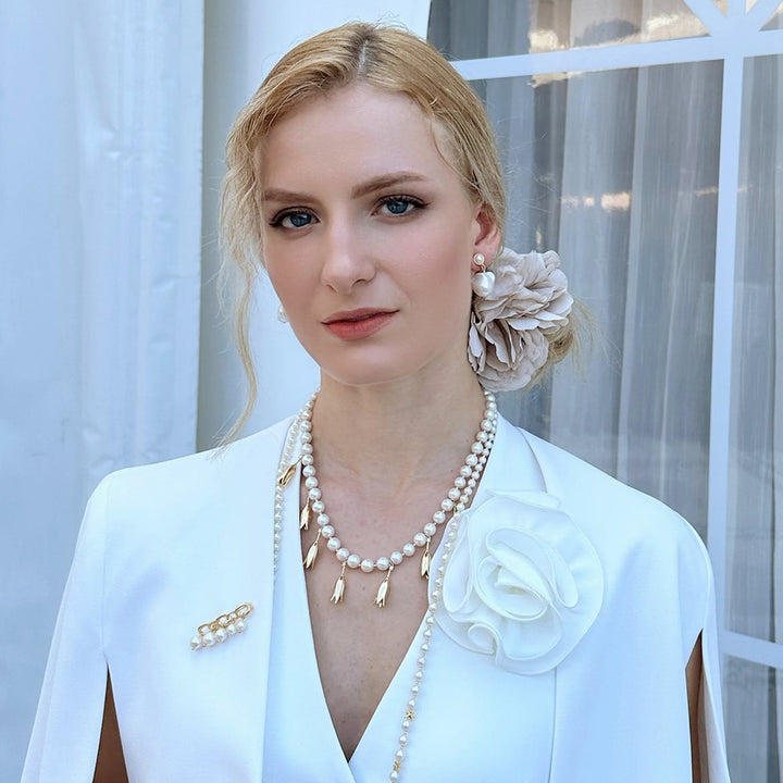 This Freshwater Pearls Flower Metal Charms Short Necklace by Farra adds femininity and sophistication to any outfit. The short length is both pretty and perfect for any occasion. Paired with freshwater pearl earrings, this necklace is an elegant and timeless gift.