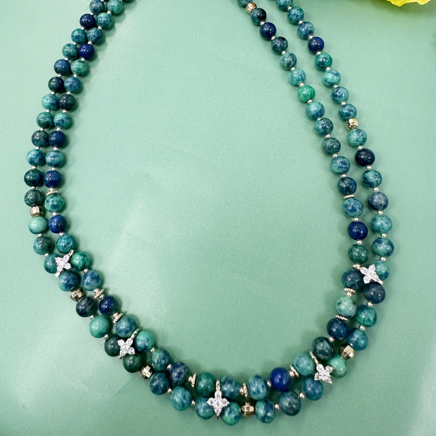 Phoenix Lapis With Zircon Stone Double Layers Collar Necklace