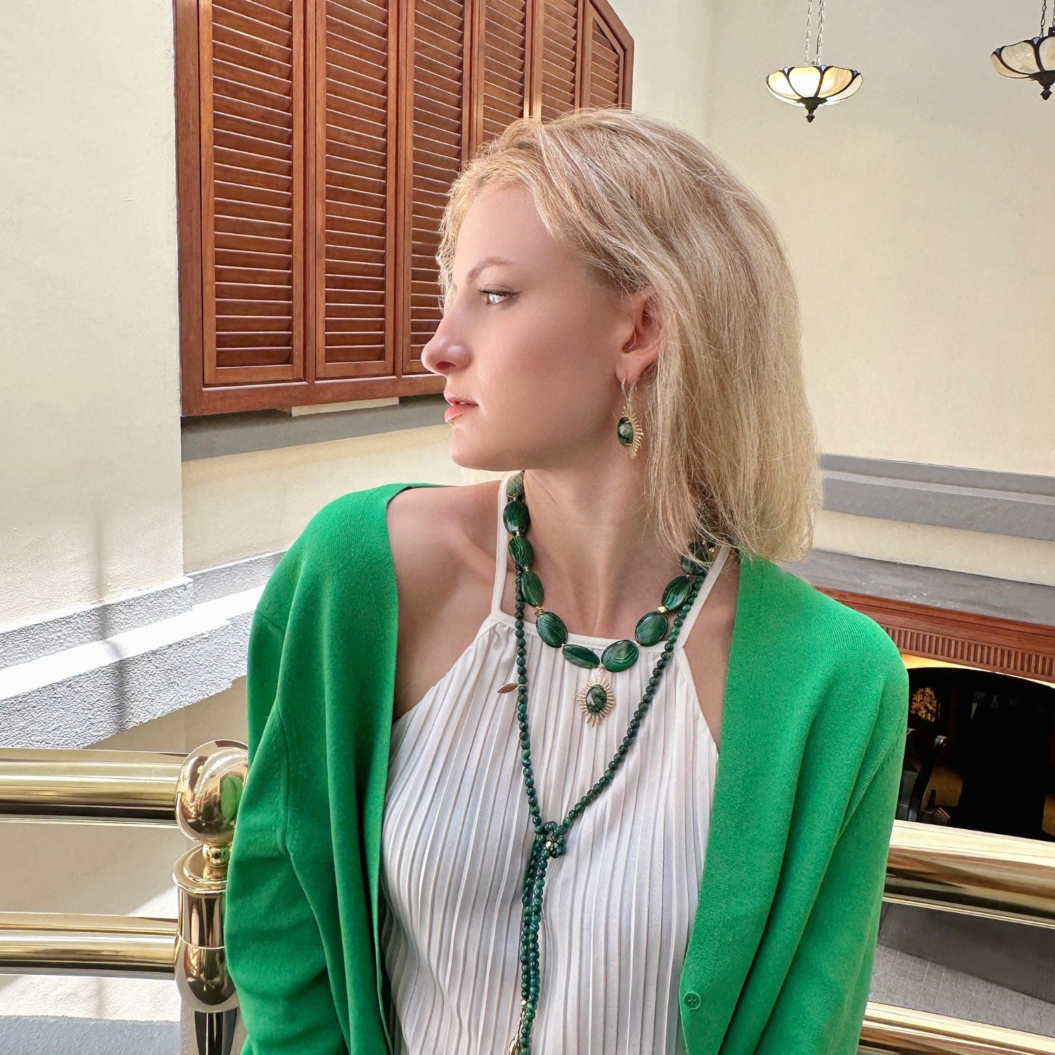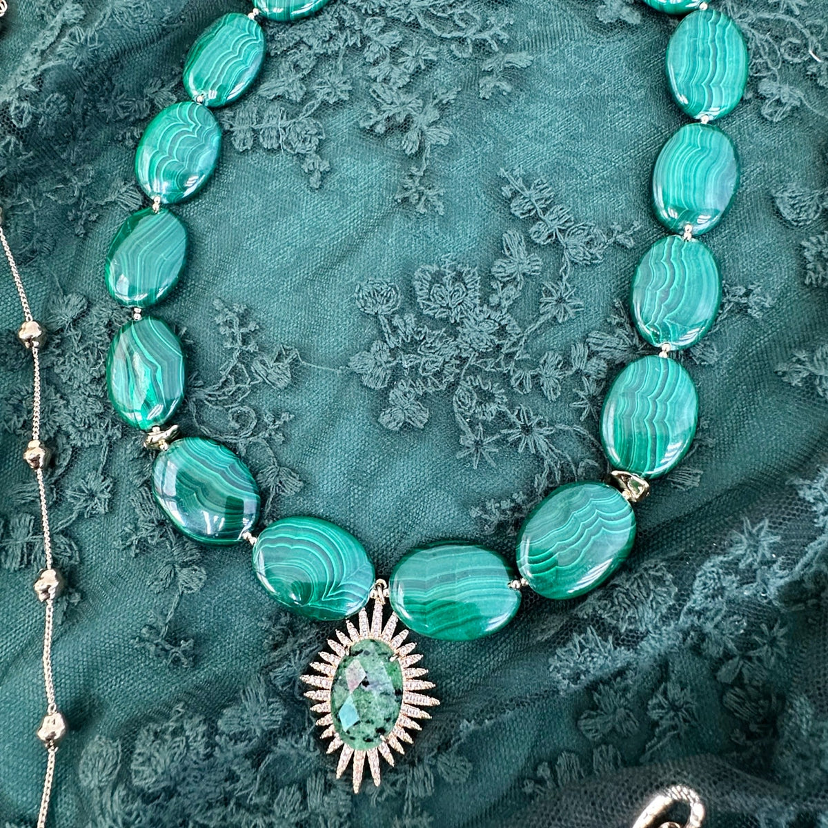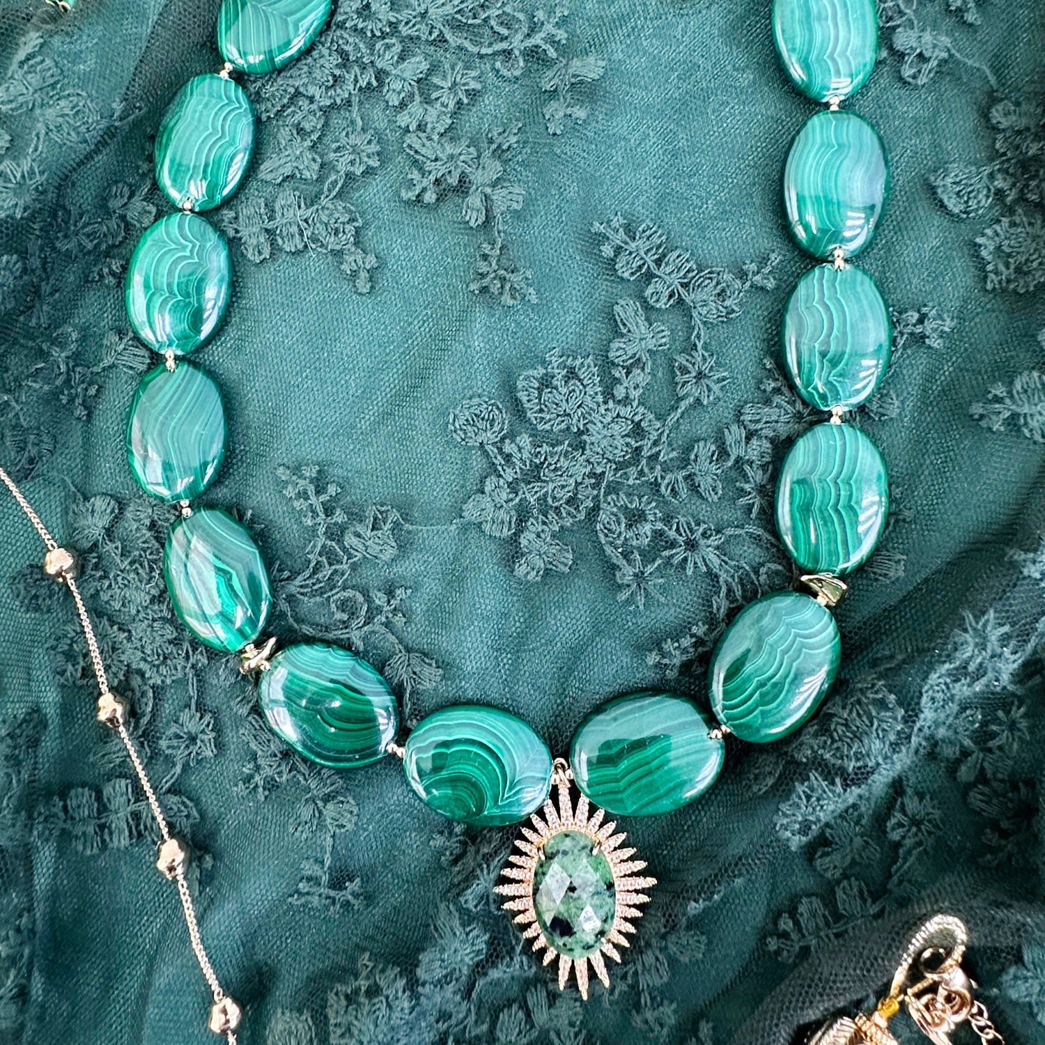 Oval Malachite With Gemstone Pendant Chunky Necklace
