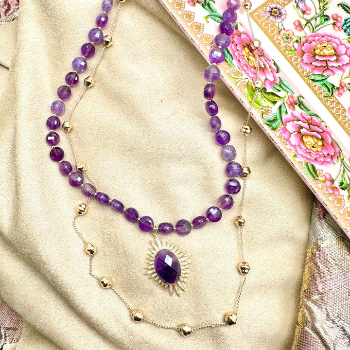 Amethyst Stones With Pendant Double Layers Necklace