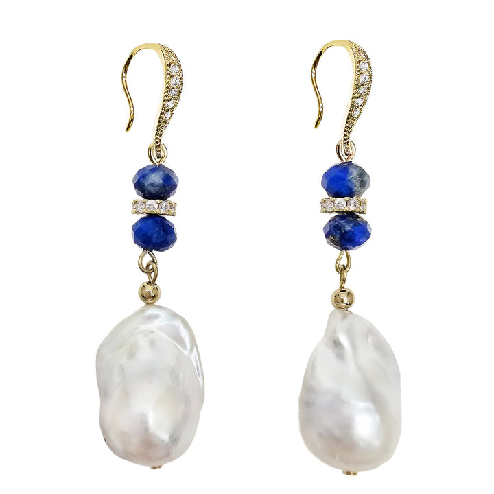 Elegance Baroque Pearls With Lapis Dangle Earrings