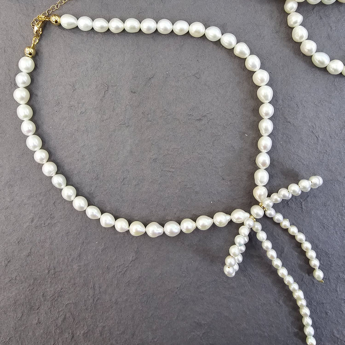 Freshwater Pearls Butterfly Knot Statement Necklace