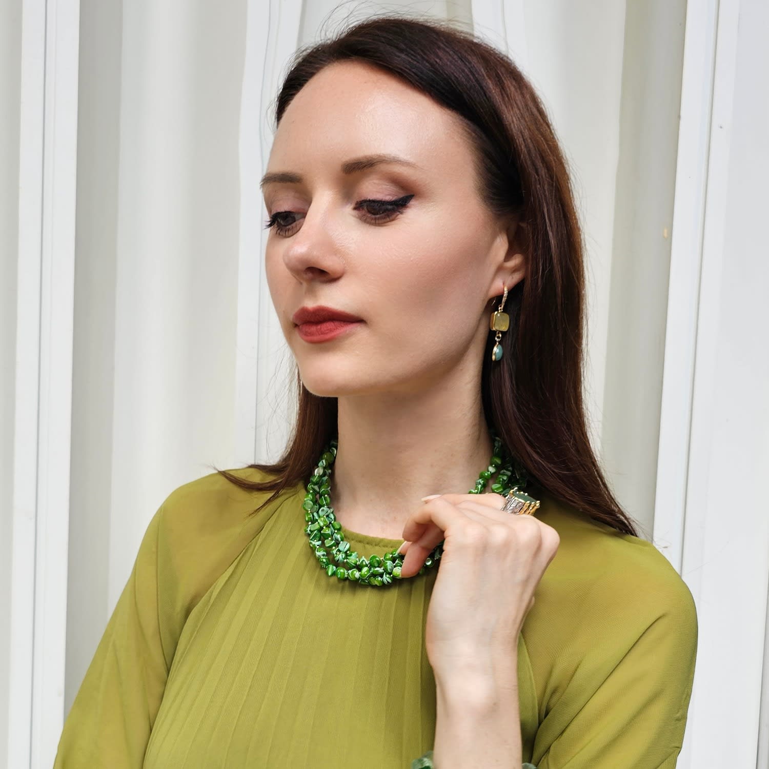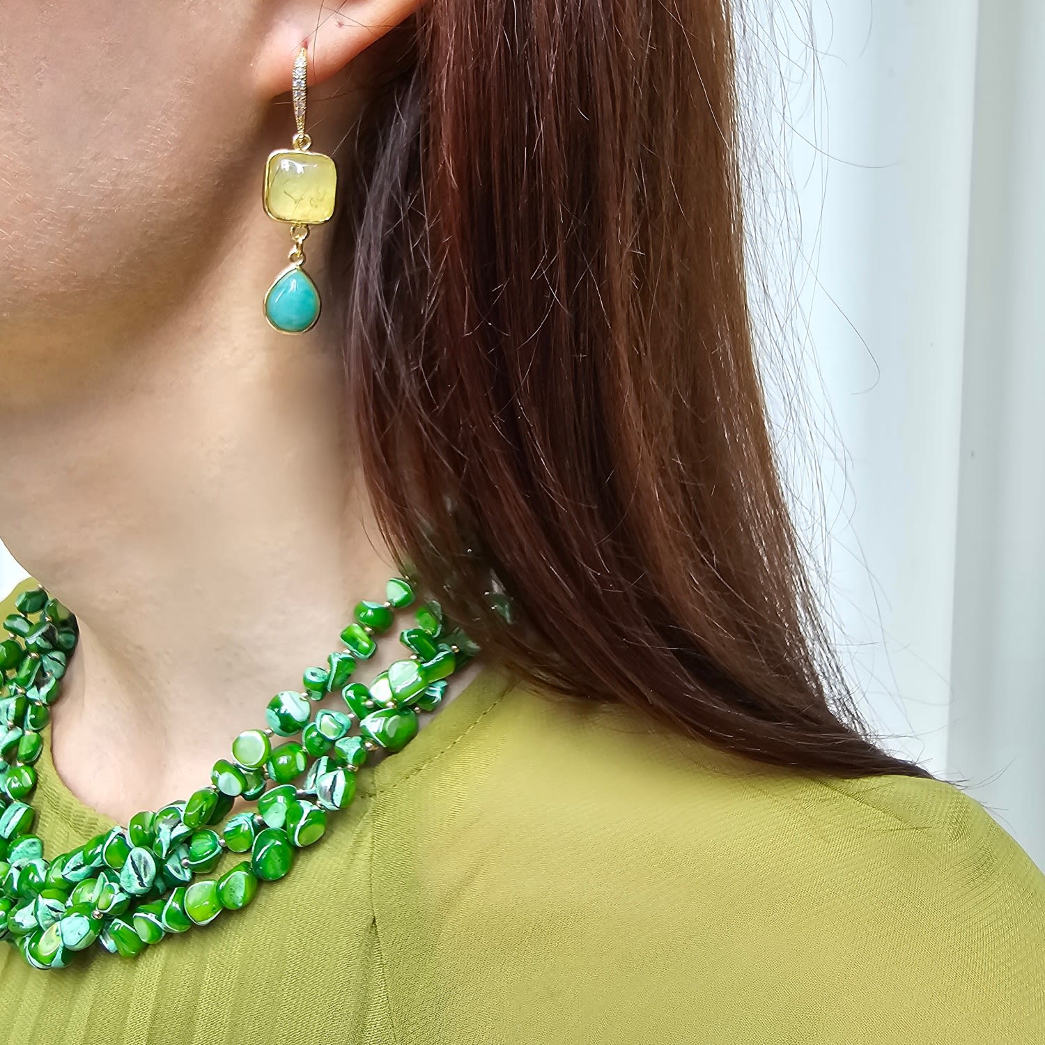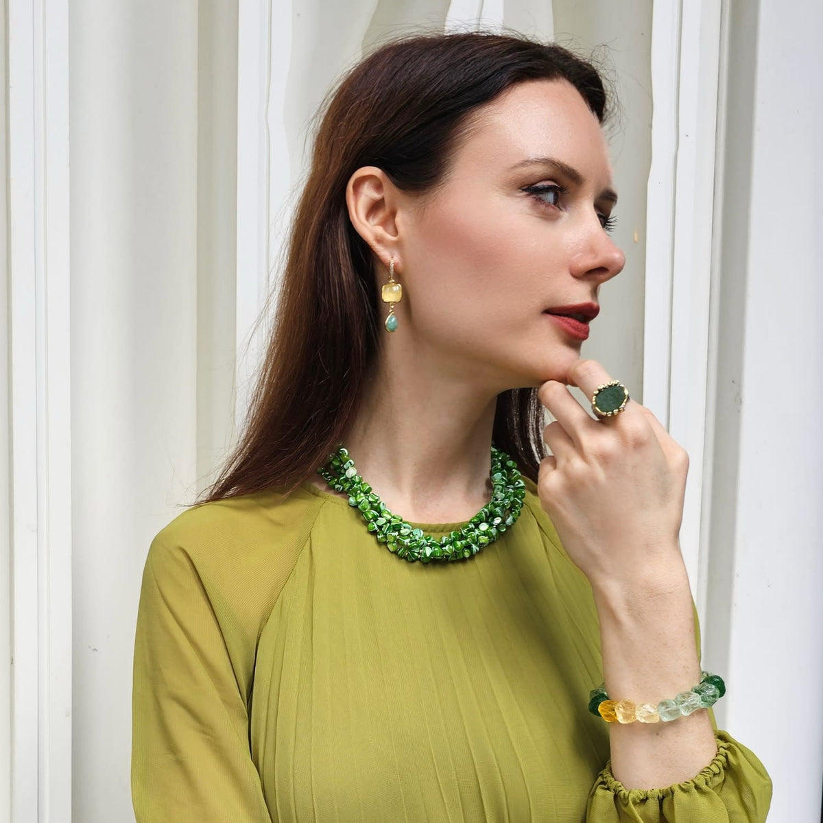 Green Natural Shell Multi-Layers Necklace