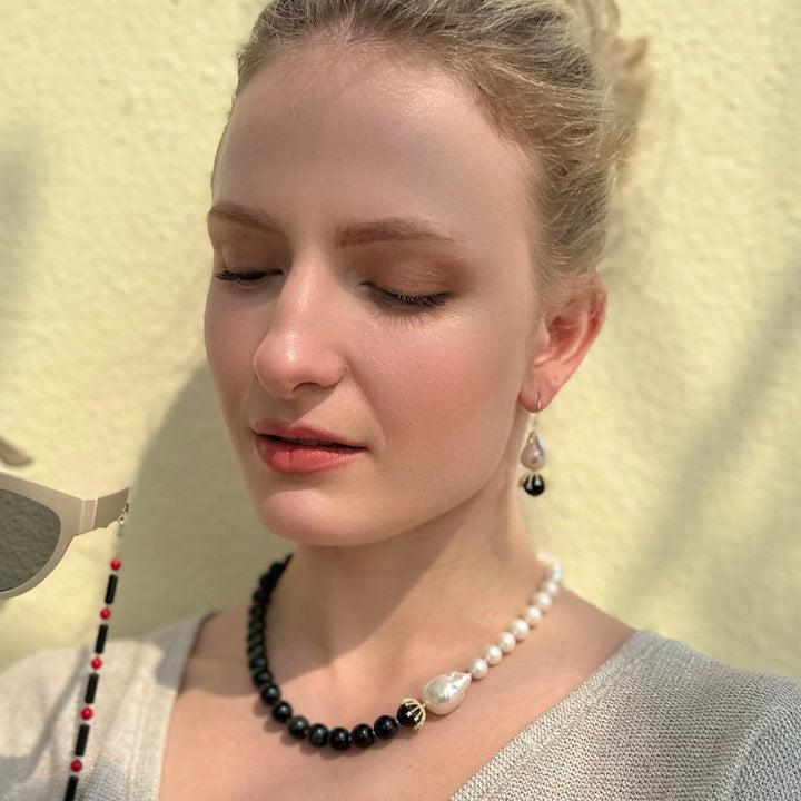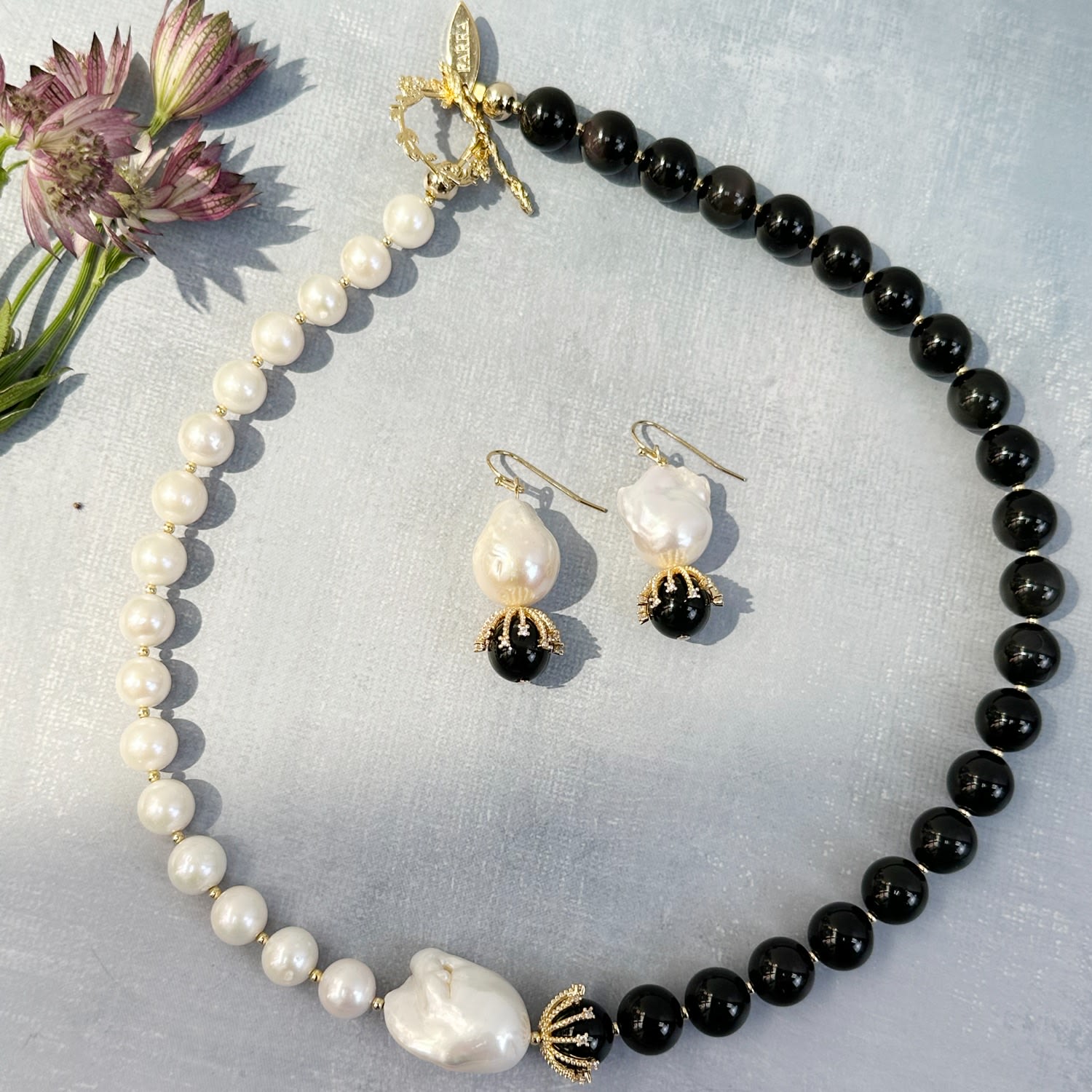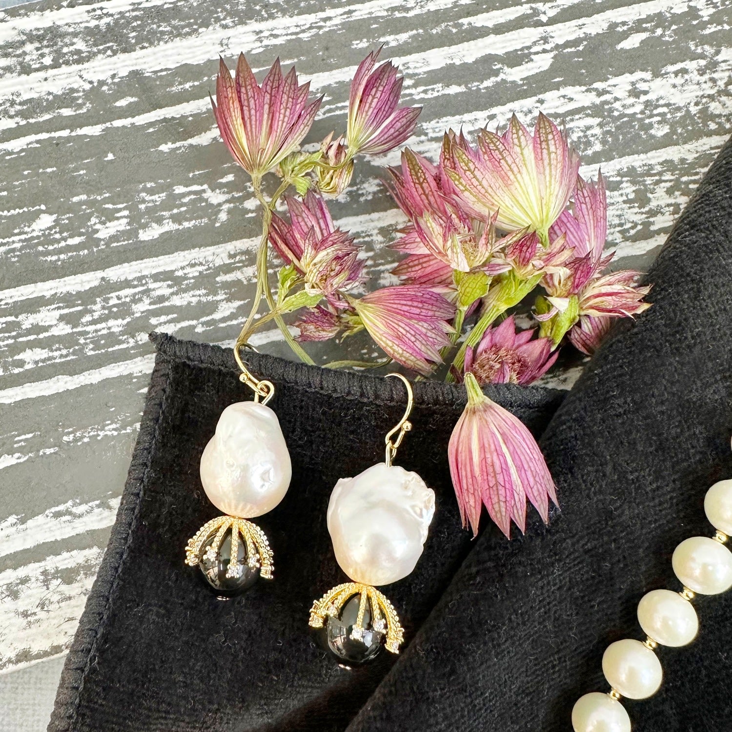 Baroque Pearls With Black Obsidian Timeless Earrings