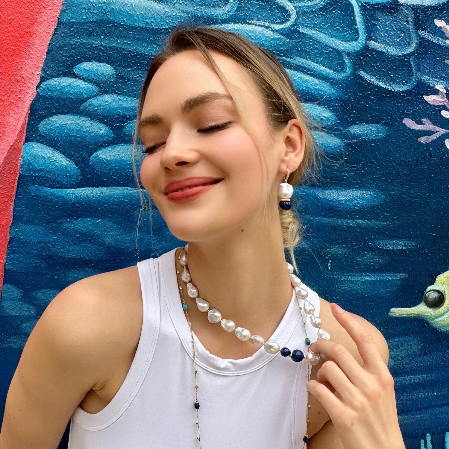 Classic Baroque Pearls With Pumpkin-Shaped Lapis Earrings