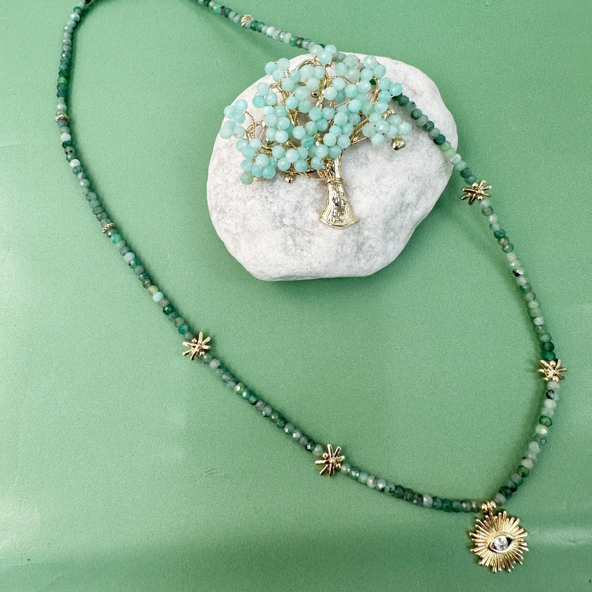 Emerald With Evil Eye Pendant Necklace