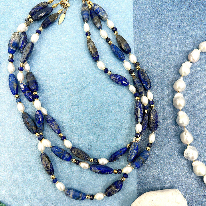 Blue Lapis With Freshwater Pearls Multi-Layers Necklace