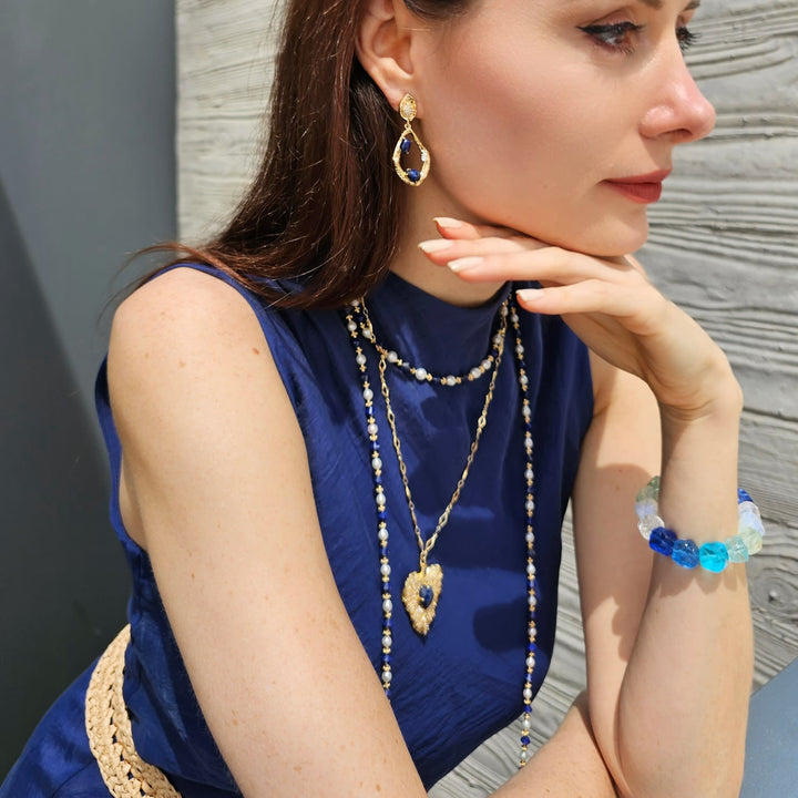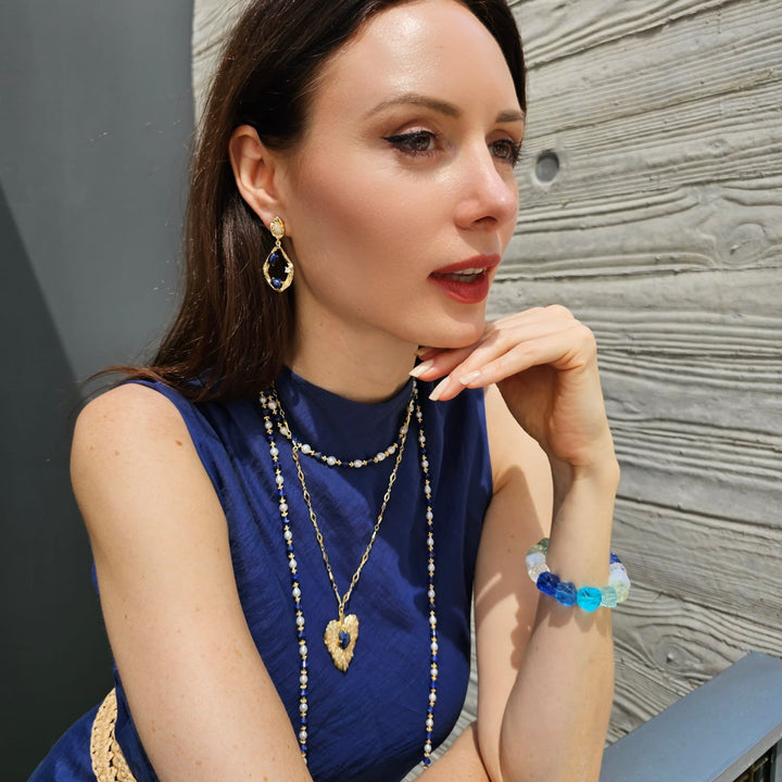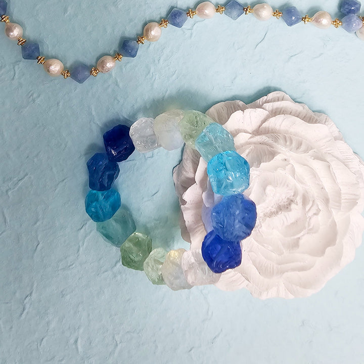 This Natural Colorful Quartz Bracelet by Farra is a celebration of individuality and the beauty of natural stones. Featuring matte aquamarine, vibrant kyanite, green fluorite, and cheerful citrine, each unique stone adds a pop of color to any outfit. This bracelet not only enhances your style but is also believed to promote positivity and clarity.