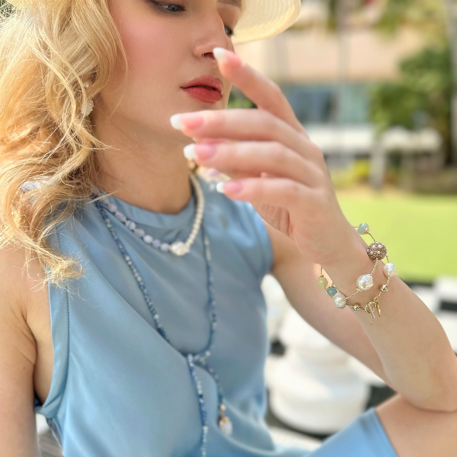 Baroque Pearl With Aquamarine Double Layers Bracelet