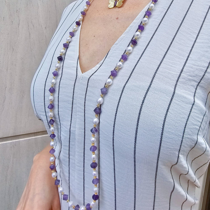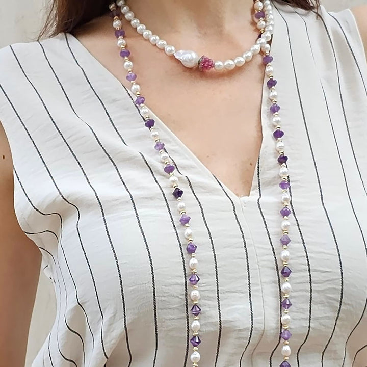Freshwater Pearls With Amethyst Long Versatile Necklace