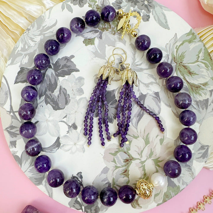 Gorgeous Amethyst With Baroque Pearls Chunky Necklace
