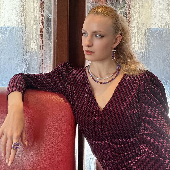 Amethyst With Orange Garnet Color Blocking Choker