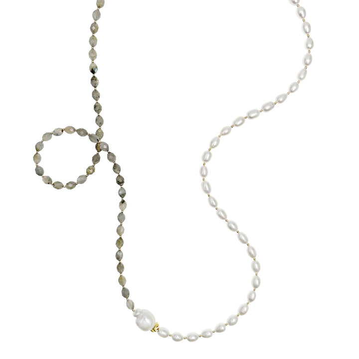 Gray Labradorite With Freshwater Baroque Pearls Long Necklace