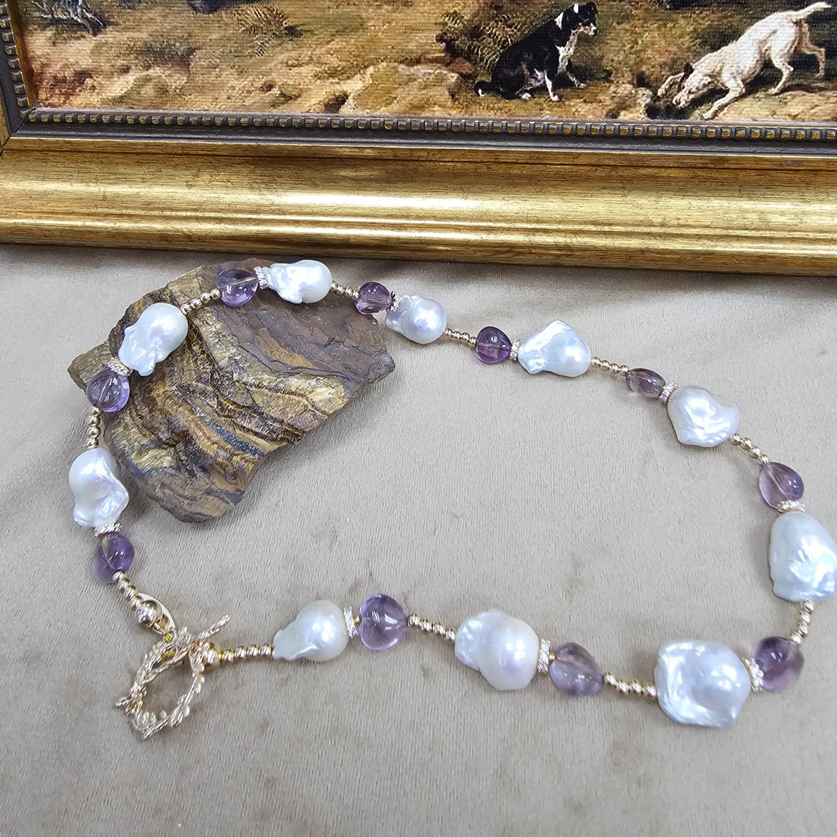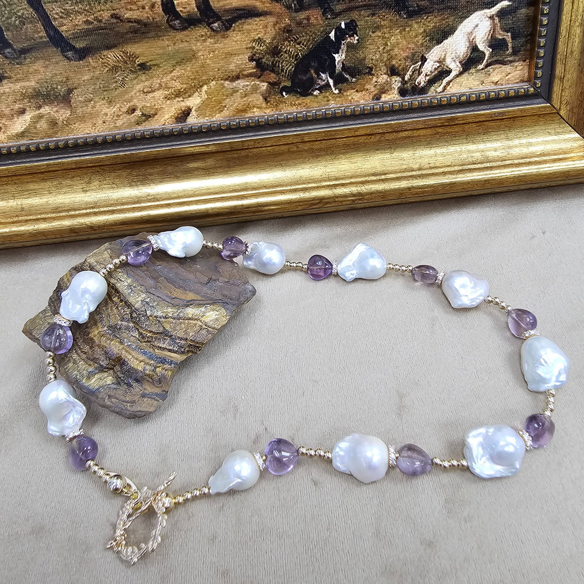 Natural Baroque Pearls With Heart Amethyst Necklace