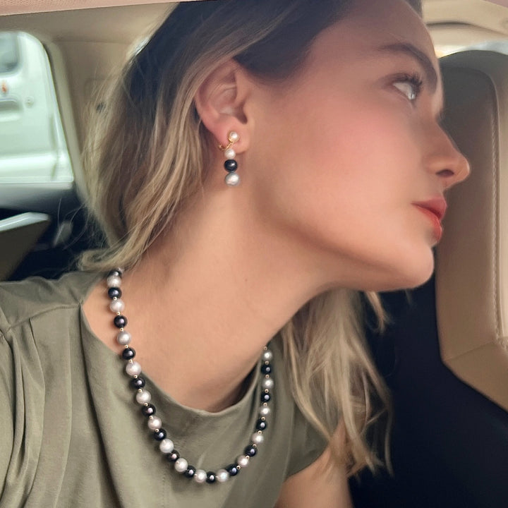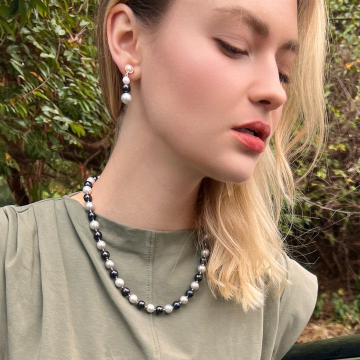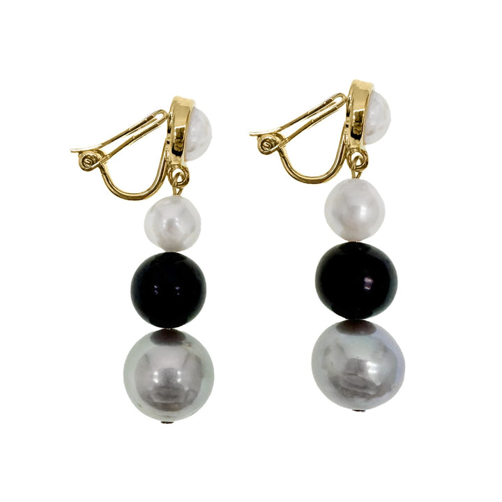 Timeless Black Grey And White Freshwater Pearls Clip-On Earrings