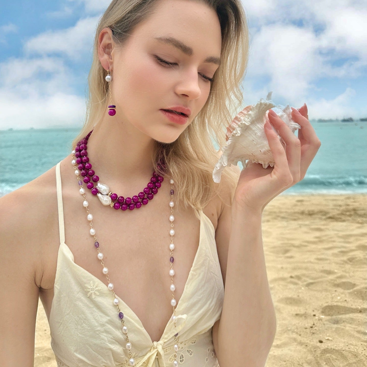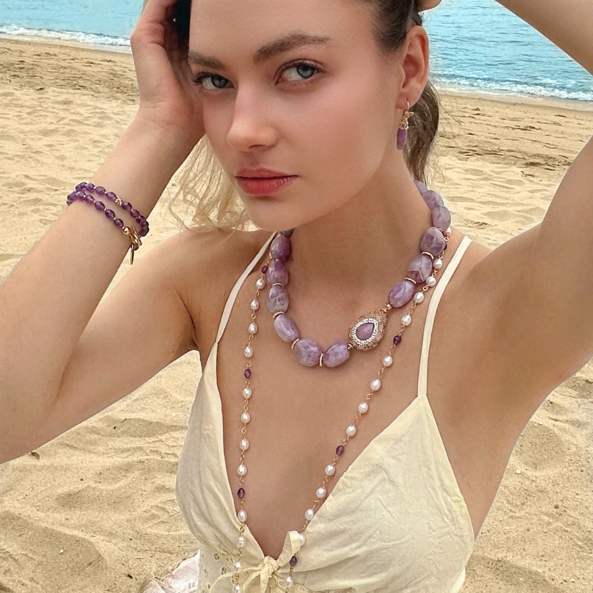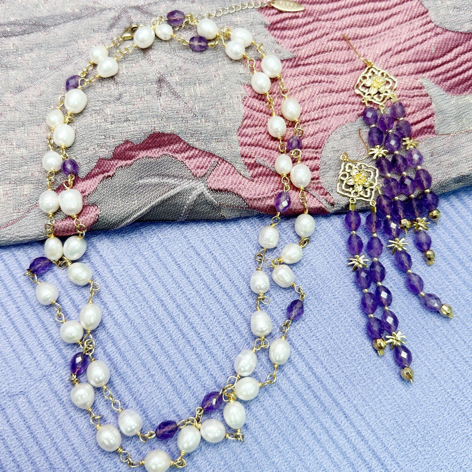 Freshwater Pearls With Purple Amethyst Long Necklace