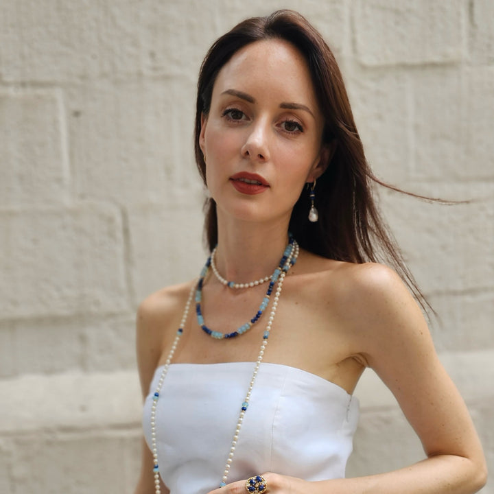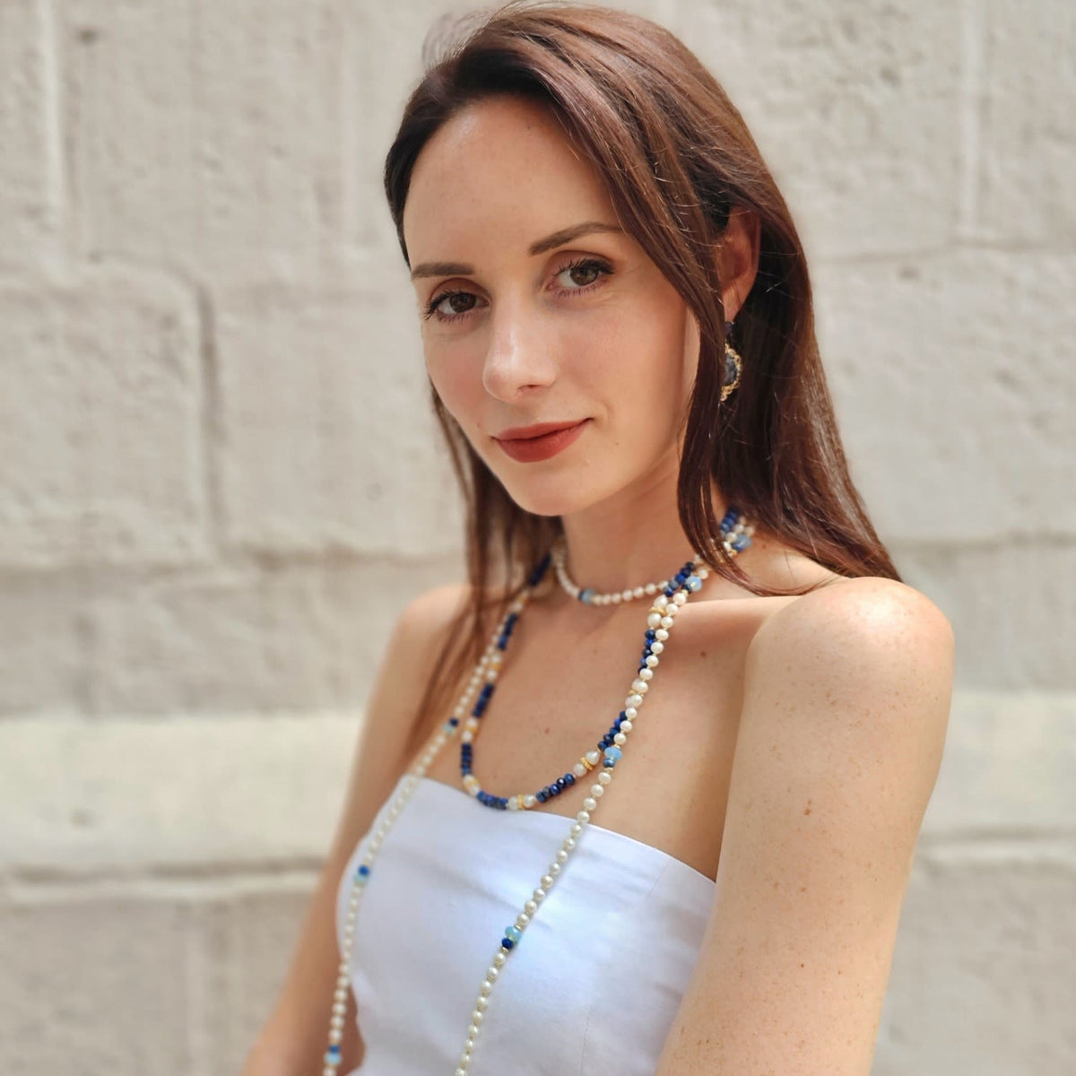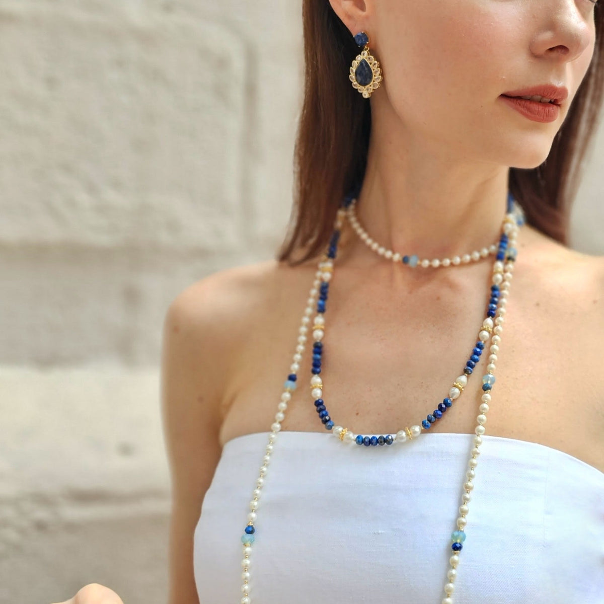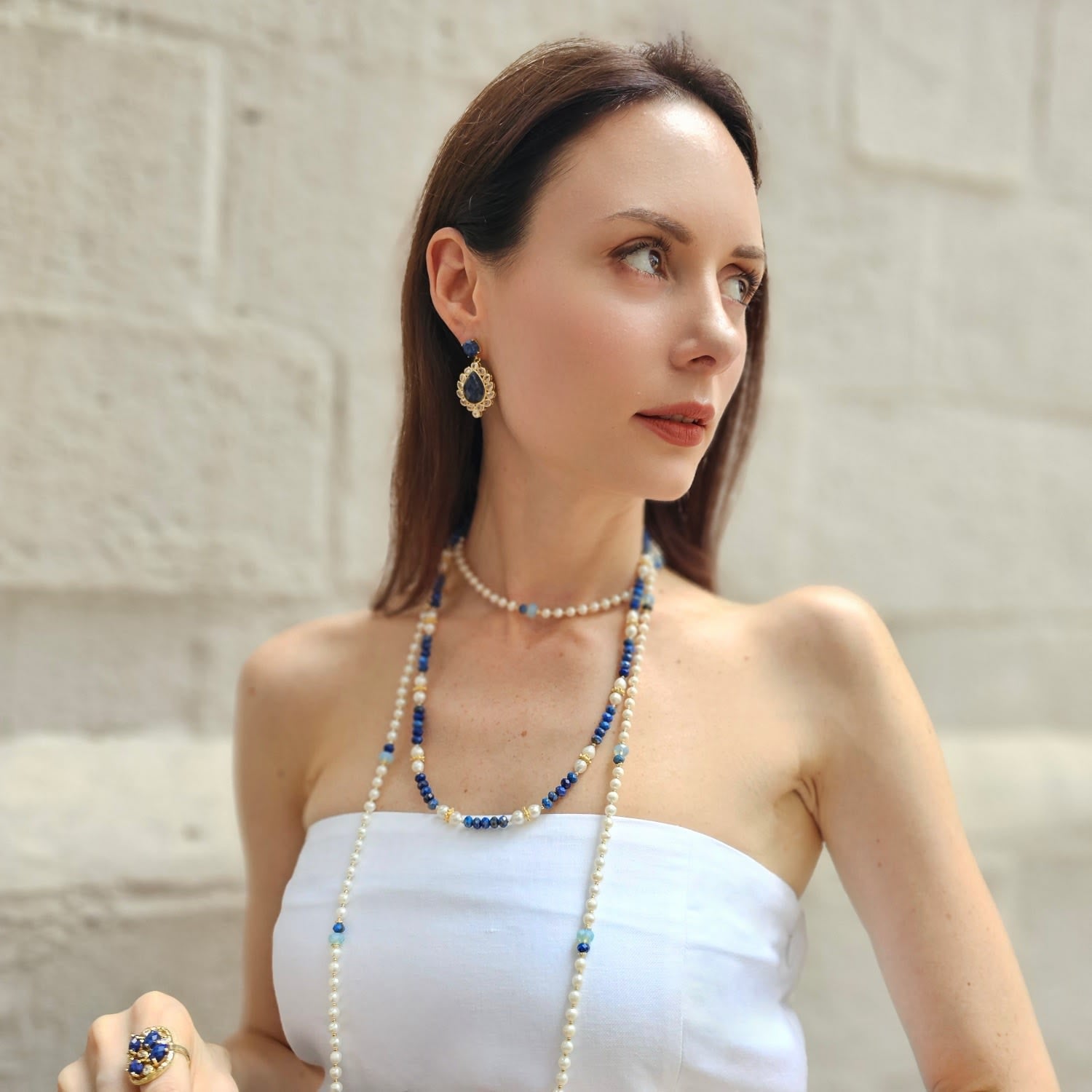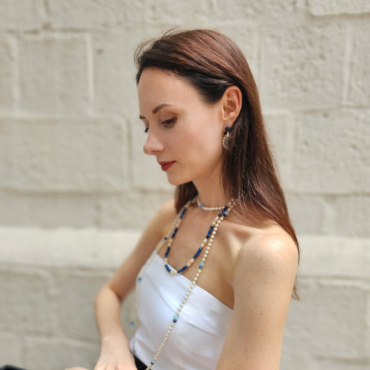 Lapis With Freshwater Pearls Matinee Length Necklace
