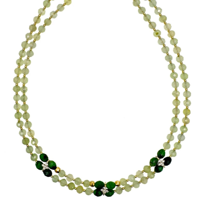 Prehnite With Zircon Stones Double Layers Collar Necklace
