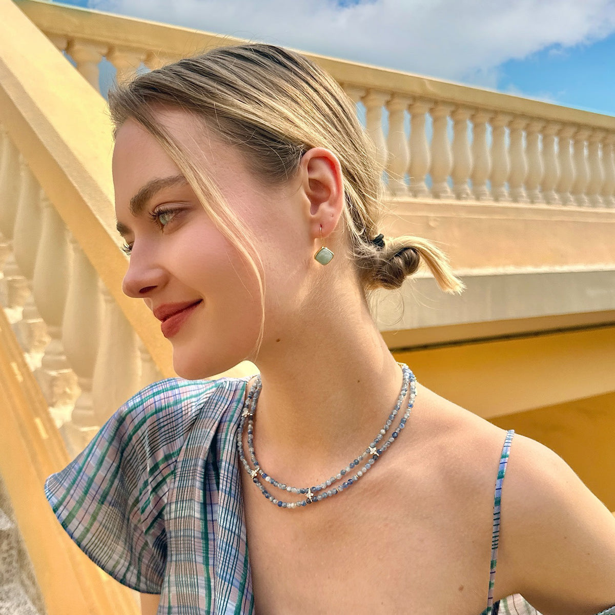 Double Layers Faceted Blue Kyanite With Zircon Stone Collar Necklace