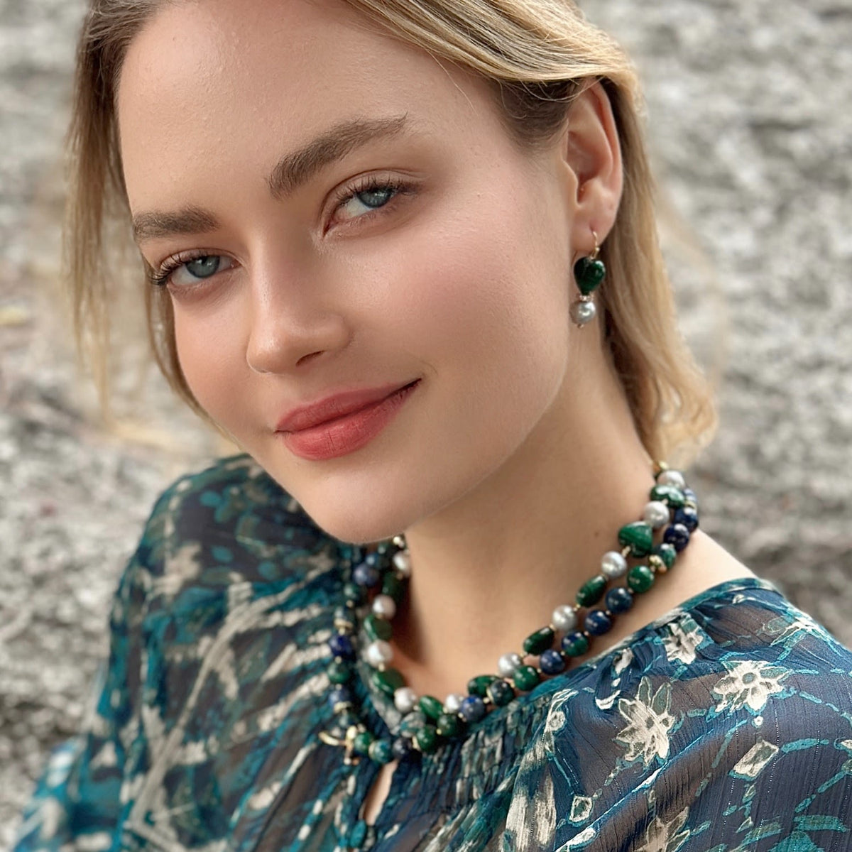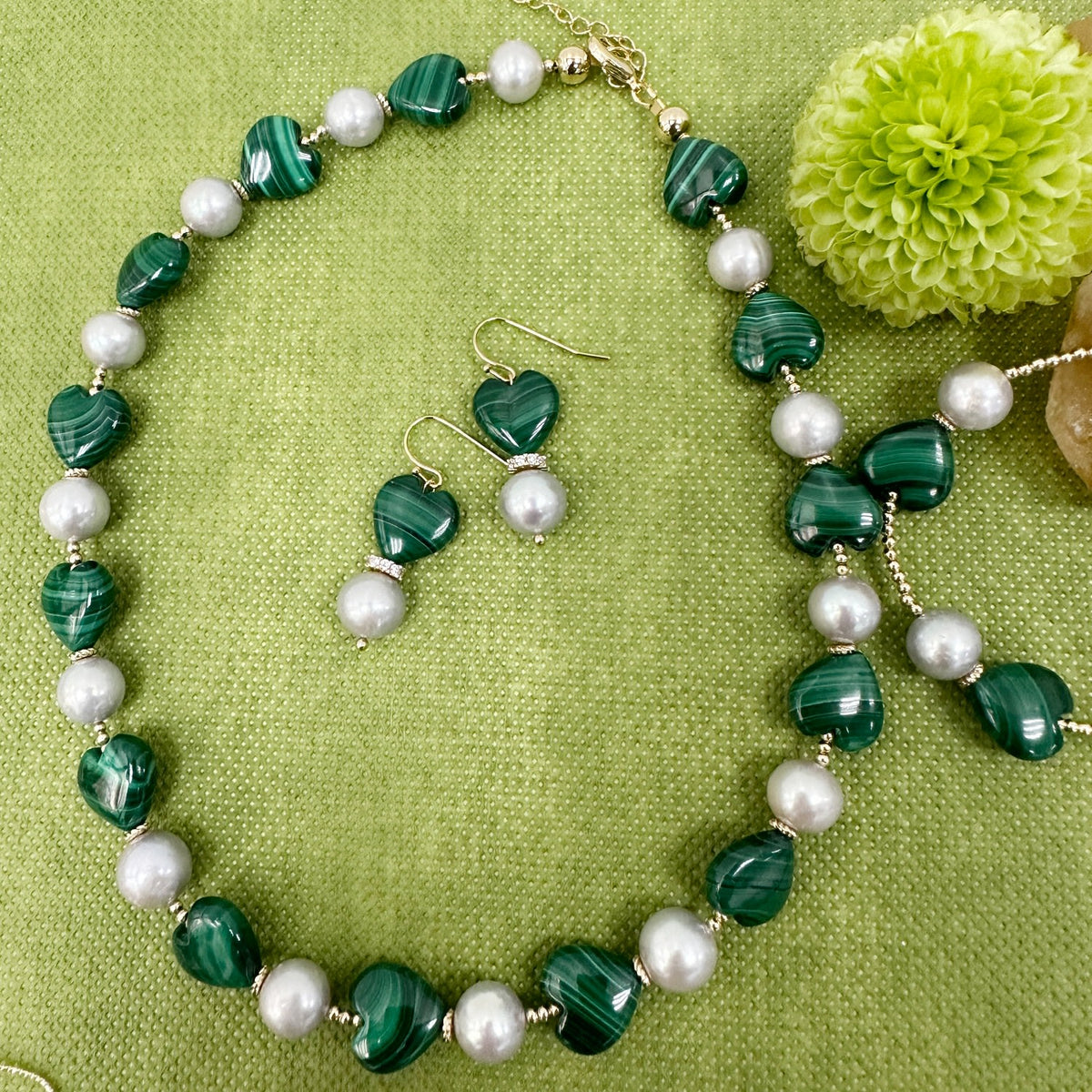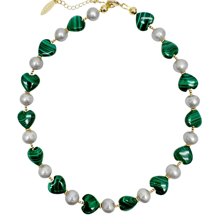Heart-Shaped Malachite With Gray Freshwater Pearls Statement Necklace