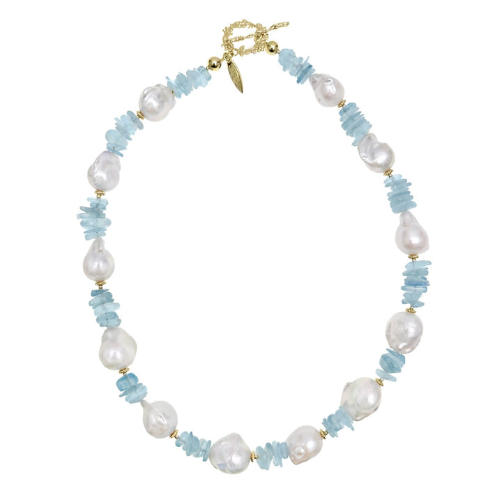 Baroque Pearls With Irregular Aquamarine Statement Necklace
