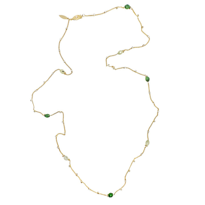 Zircon Stone With Green Gemstone Long Gold Necklace