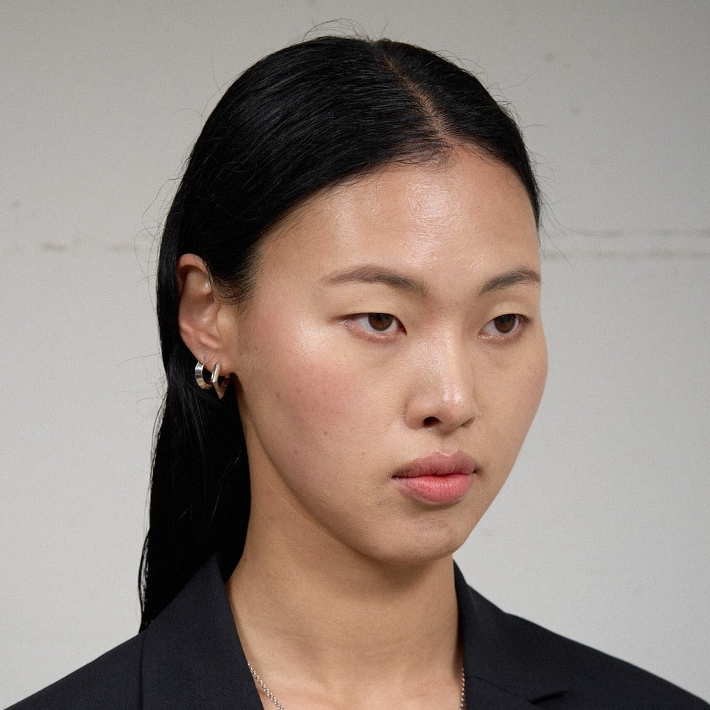 These earrings are crafted from Silnova®, a unique alloy composed of 100% recycled silver and palladium. The material is as durable as 9k white gold and is hypoallergenic, antibacterial, and 20 times more tarnish-resistant than traditional silver. They have a satin finish.