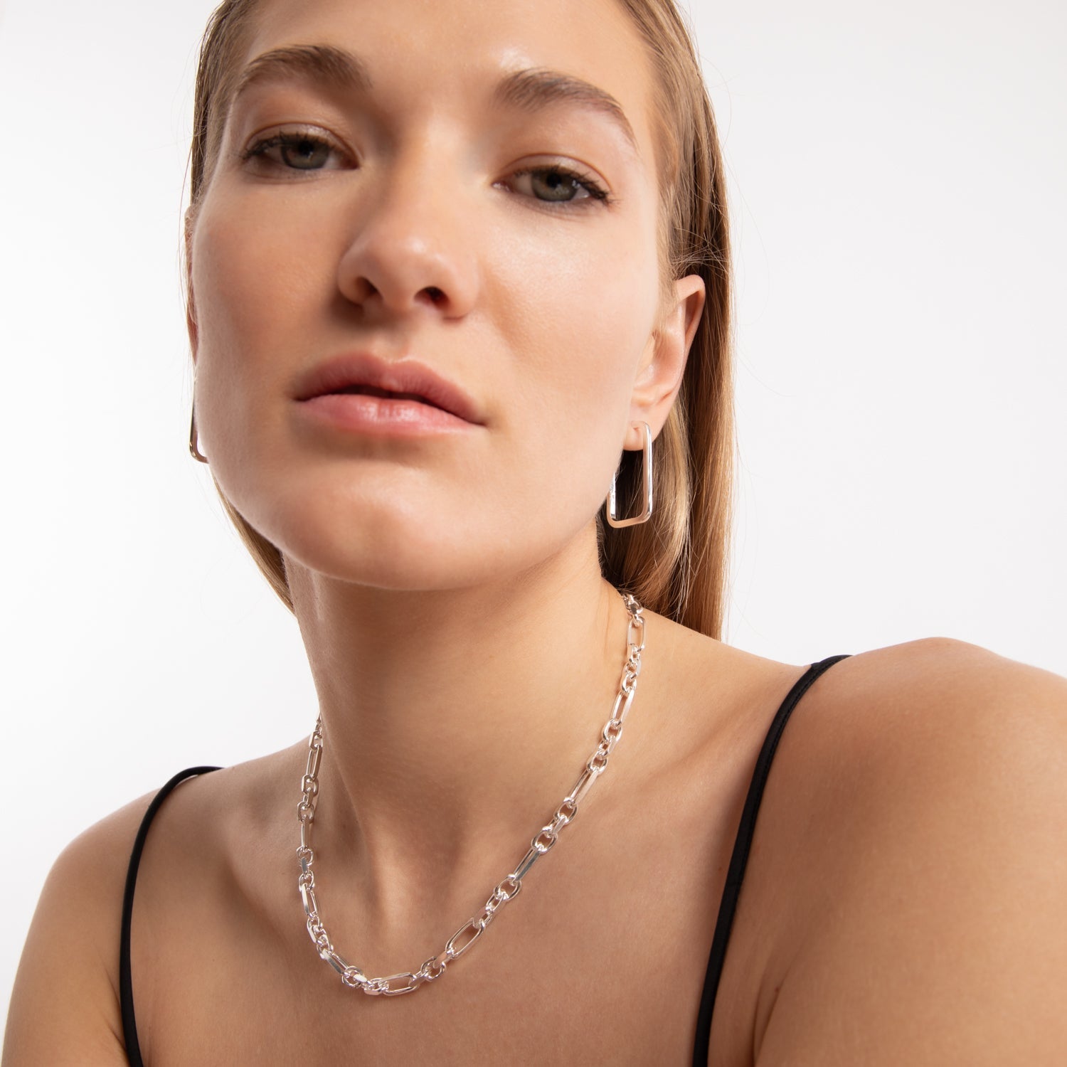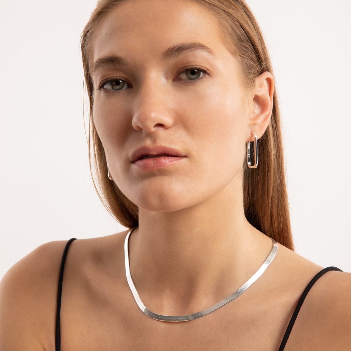 The Erato Huggies by Fersera are a beautiful blend of history and modernity. Crafted from the exclusive Silnova alloy, these silver huggies are inspired by the shape of a zither, the instrument of Erato, the muse of love poetry. They are designed with a rectangular shape and soft corners, reflecting a balance between a glorious past and an avant-garde present.