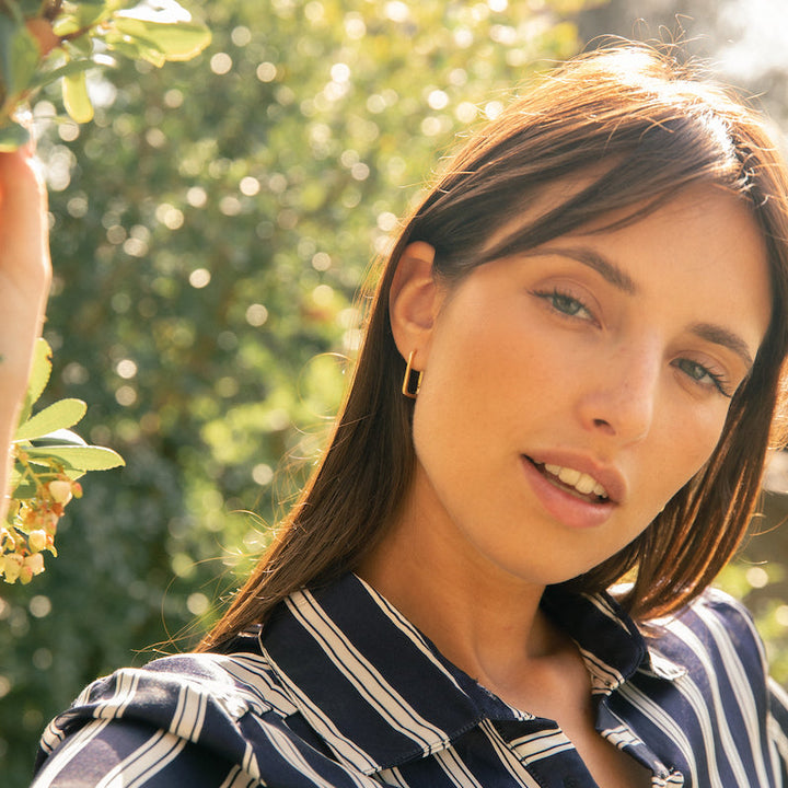 The Erato Small Earrings by Fersera are a beautiful blend of history and modernity. Crafted from the exclusive Silnova alloy, these small huggies are inspired by the shape of a zither, the instrument of Erato, the muse of love poetry. They are durable, tarnish-resistant, and hypoallergenic, reflecting a perfect balance between a glorious past and an avant-garde present.